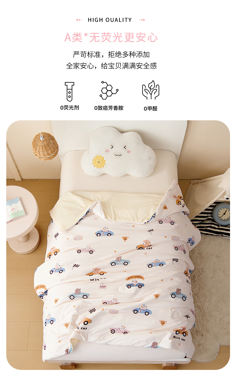 御棉坊 御棉坊2026圆网A类凉感幼儿园夏凉被宝宝午睡薄被子儿童空调被夏被 波比赛车-米