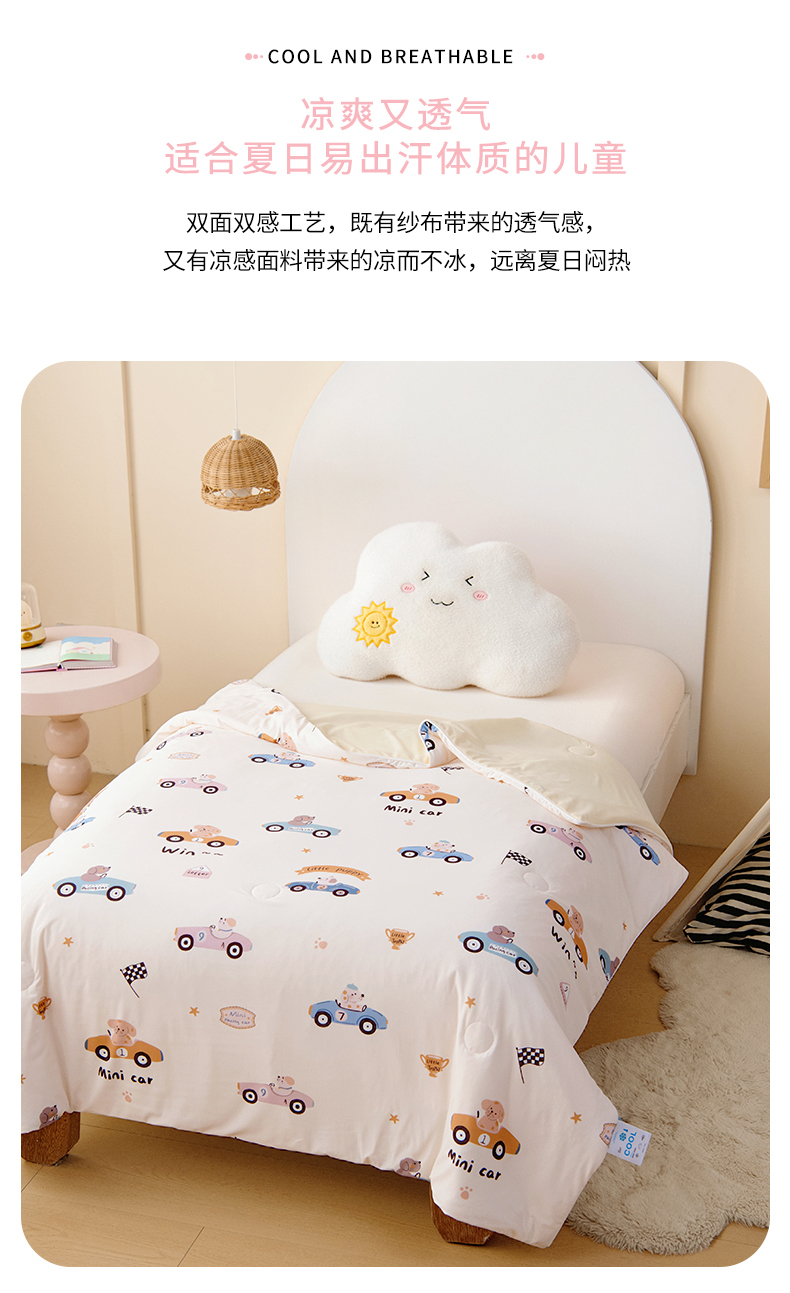 商品名称:御棉坊 御棉坊2026圆网A类凉感幼儿园夏凉被宝宝午睡薄被子儿童空调被夏被 波比赛车-米