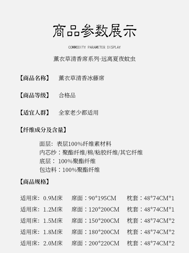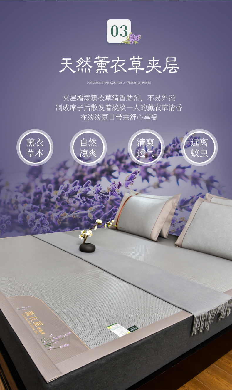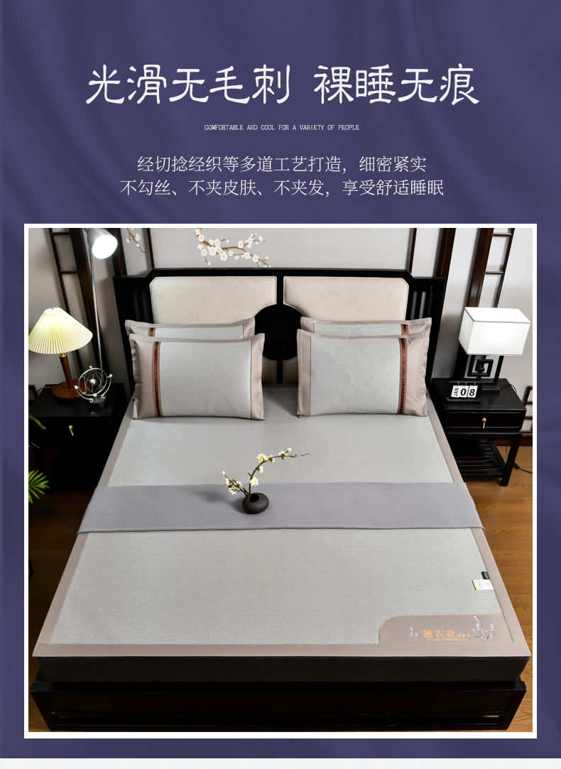 当前位置: 91家纺网 > 商品网购 > 床上用品 > 凉席 > 小牛席业 2026新款薰衣草冰藤席系列(冰藤席面)凉席藤席冰藤双面席冰丝席竹席凉席空调席草席三件套 薰衣草清香冰藤席-银灰