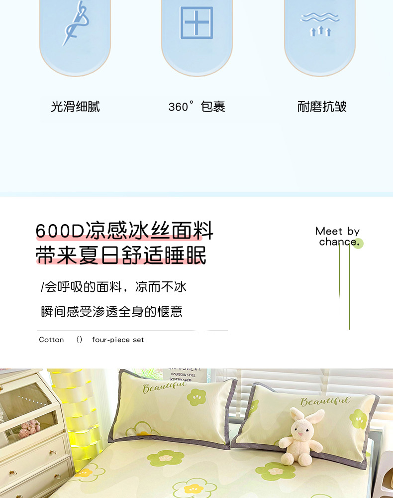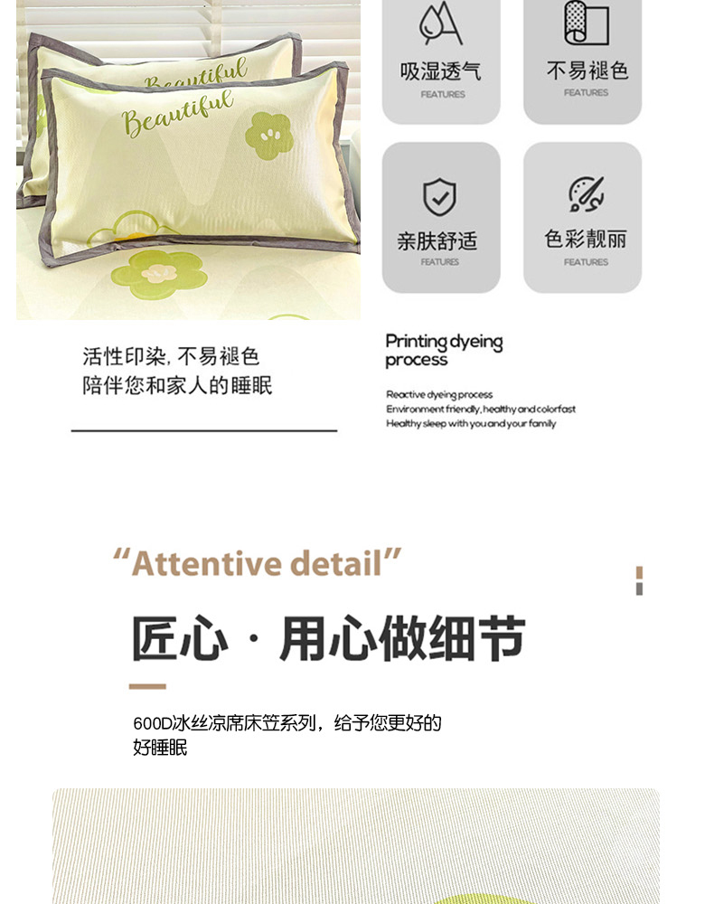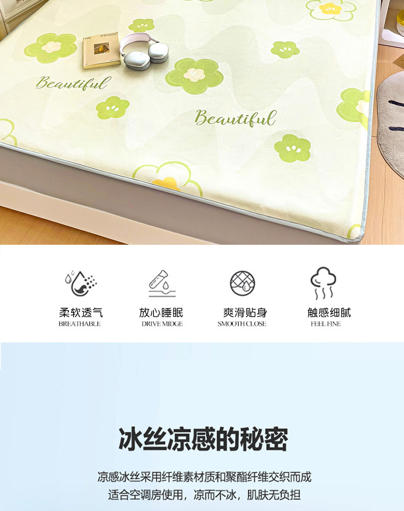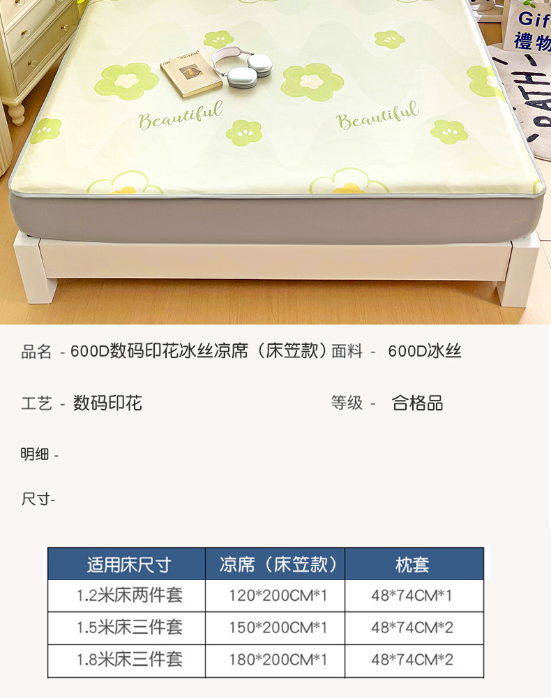 商品名称:金盛纺 2025新款A类数码印花冰丝席-床笠款春意