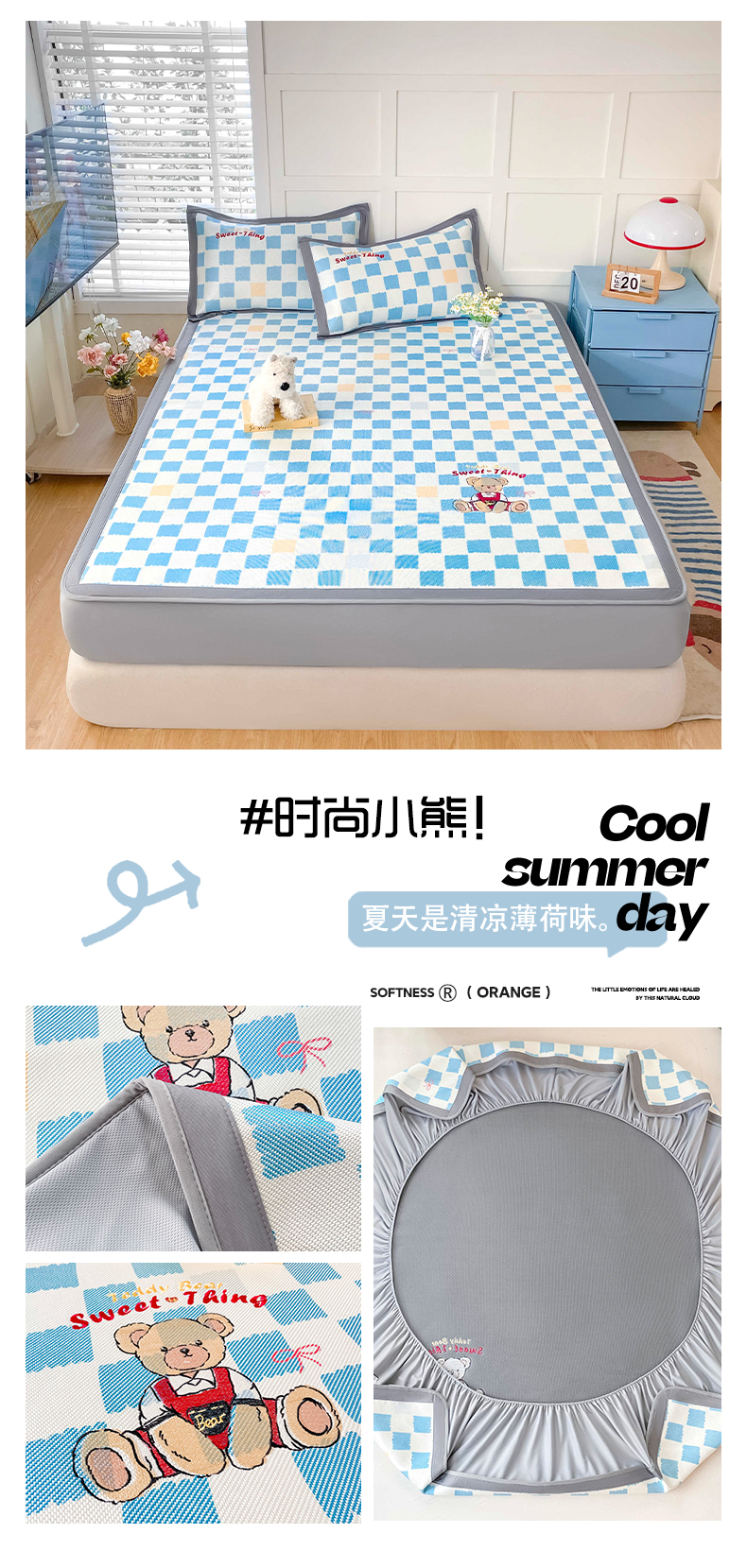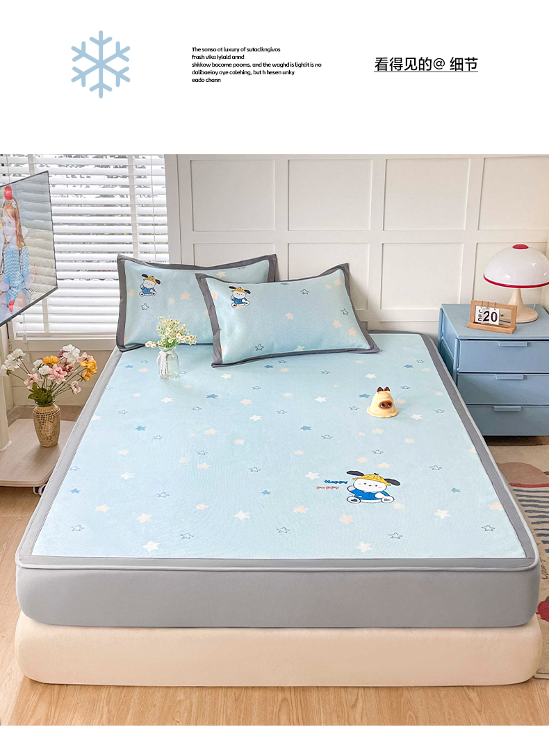 (总)雅居纺家纺 2026新款A类加厚三明治底提花小清新凉感席床笠款凉席席子,粉小兔,蝴蝶结猫咪,领结小猫,平安熊猫,山茶花,太空星球,晚安小狗,小熊熊,星星小熊,悠闲花园