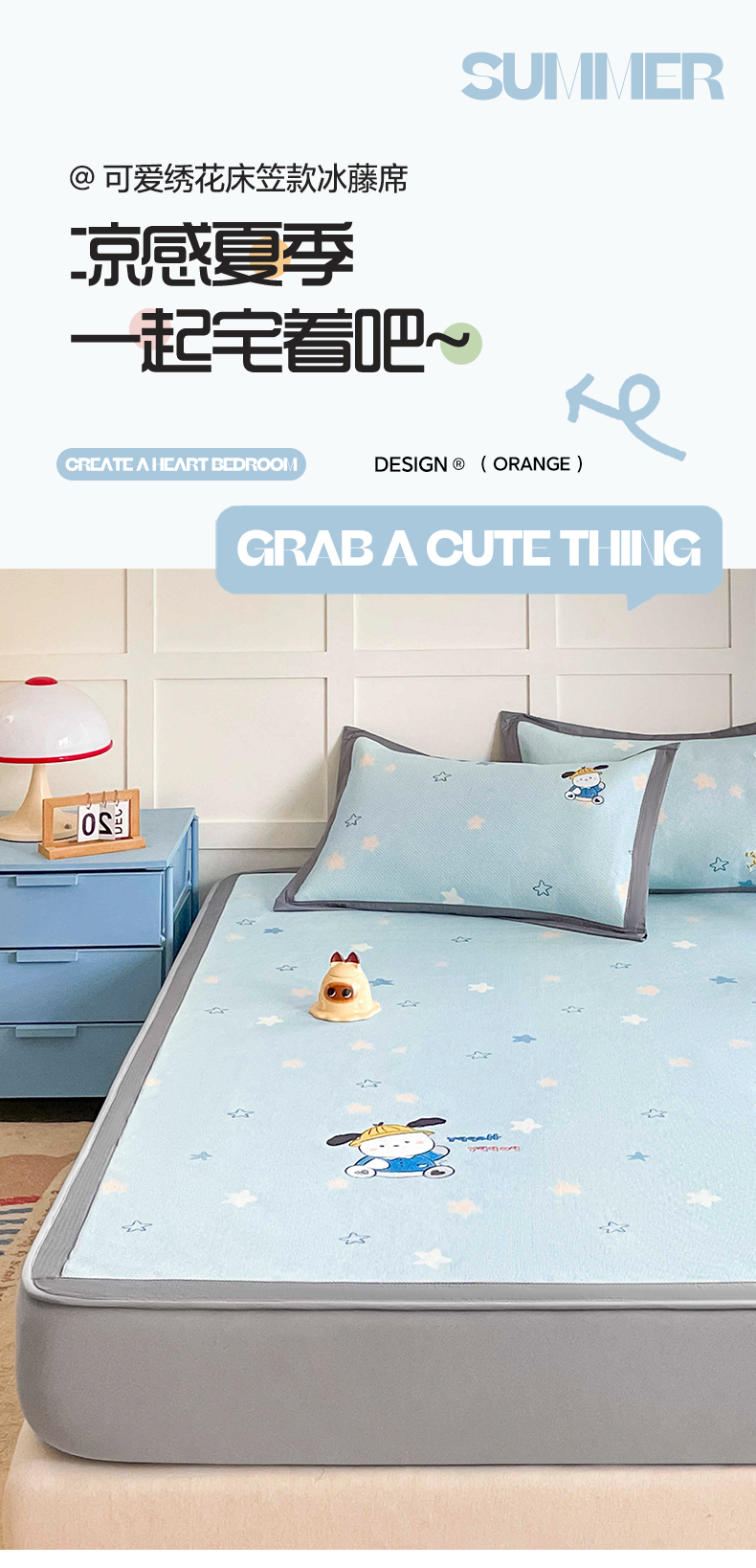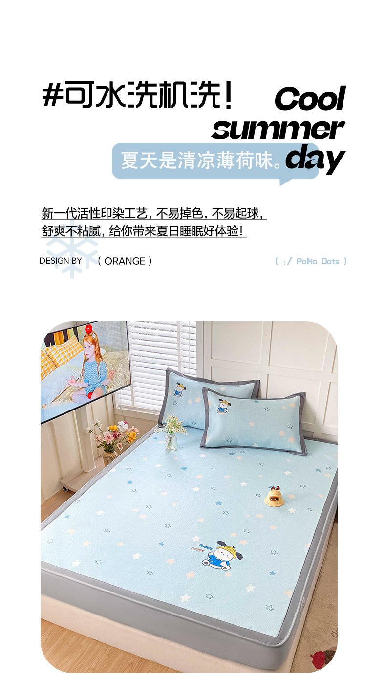 (总)雅居纺家纺 2026新款A类加厚三明治底绣花冰藤席学生宿舍床床单款凉席席子,冰淇淋萌狗,动感小狗,七彩虹,万事不南,小象家族,星星腊肠狗,幸运巴拉
