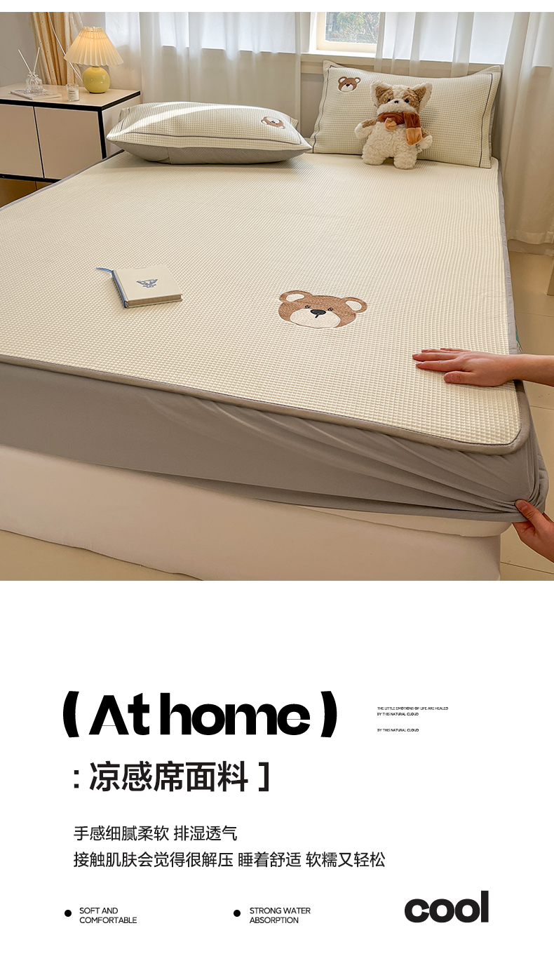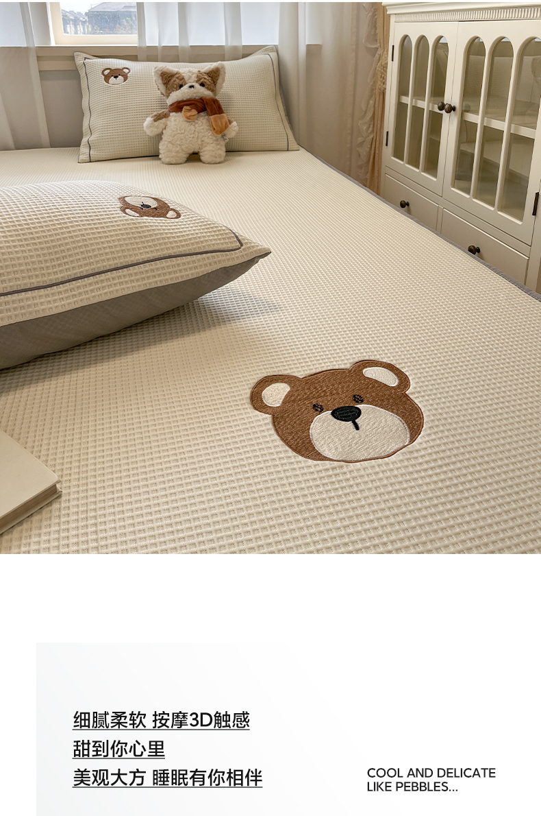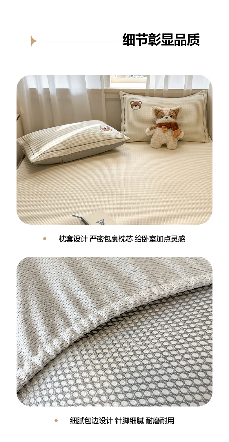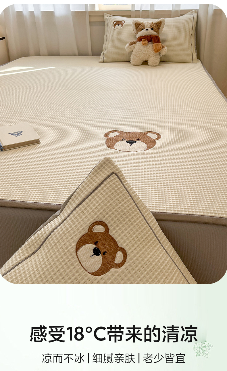 商品名称:雅居纺家纺 2026新款A类加厚三明治底华夫格绣花凉感席床笠款凉席席子 床笠款-熊出没