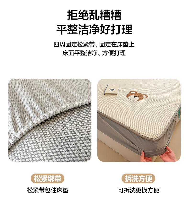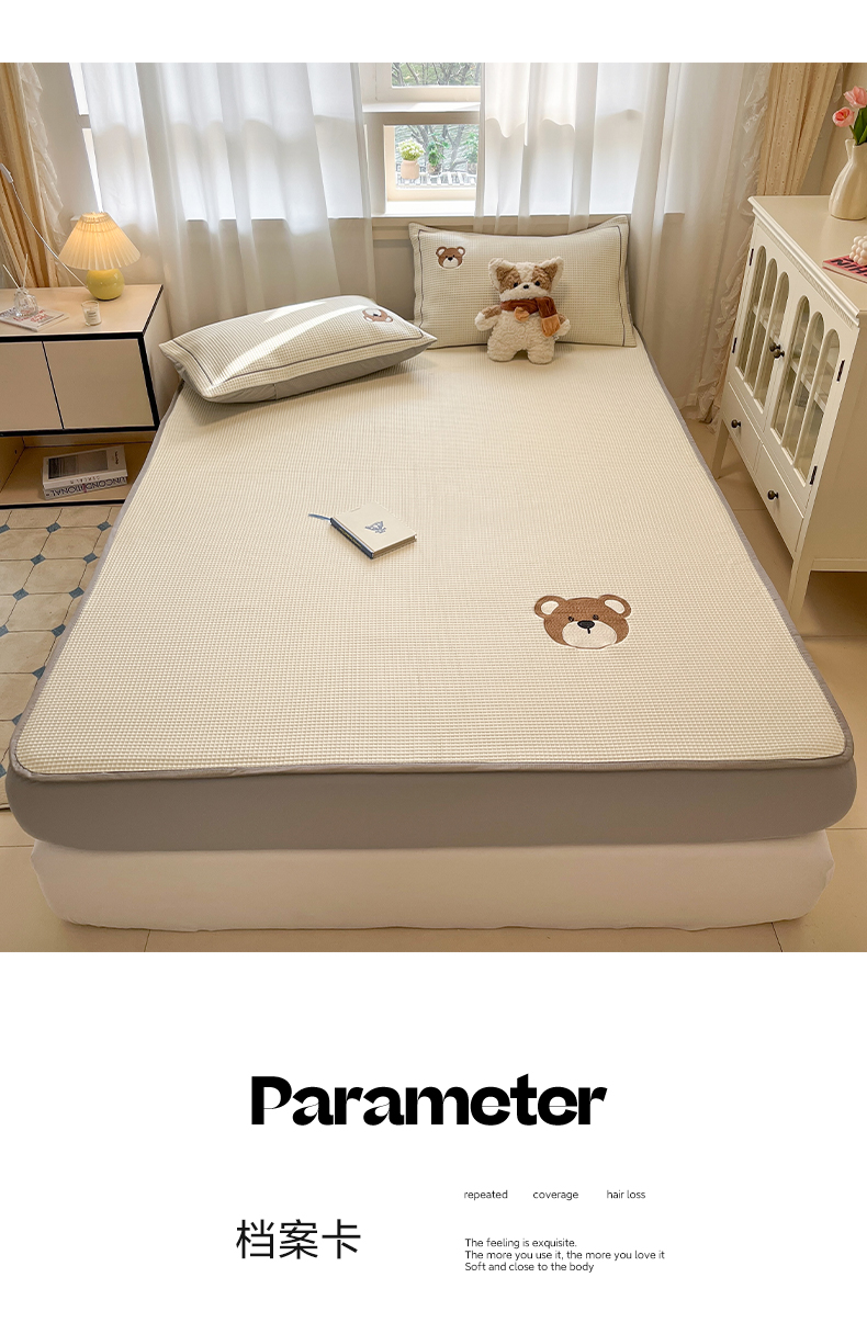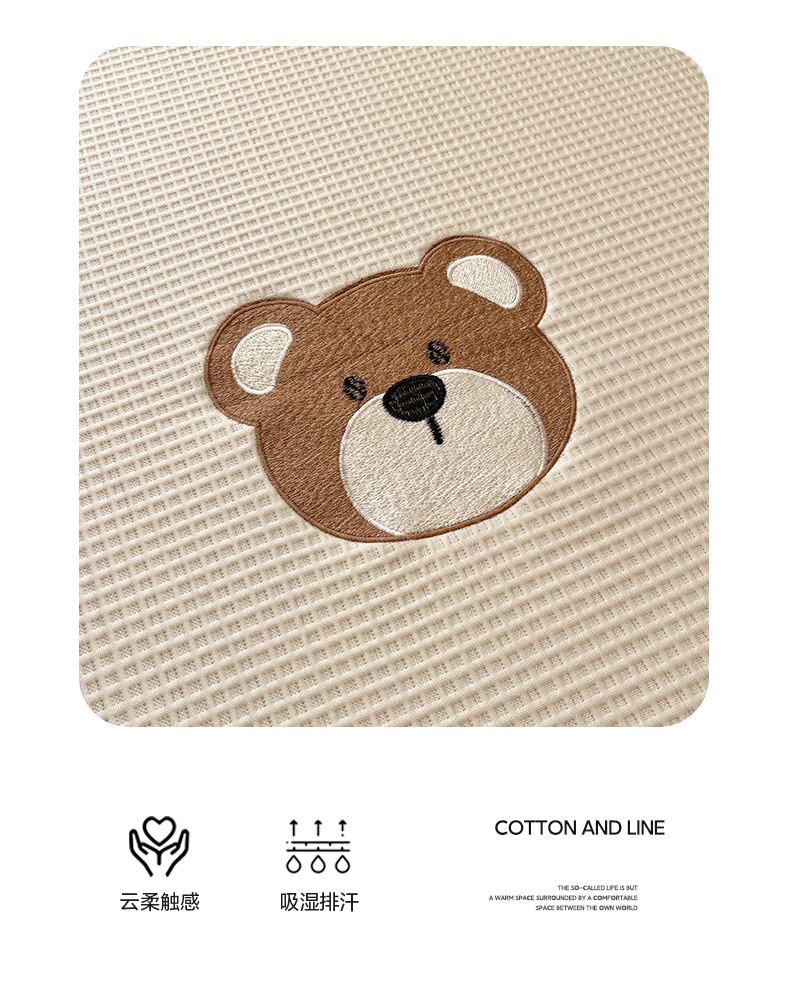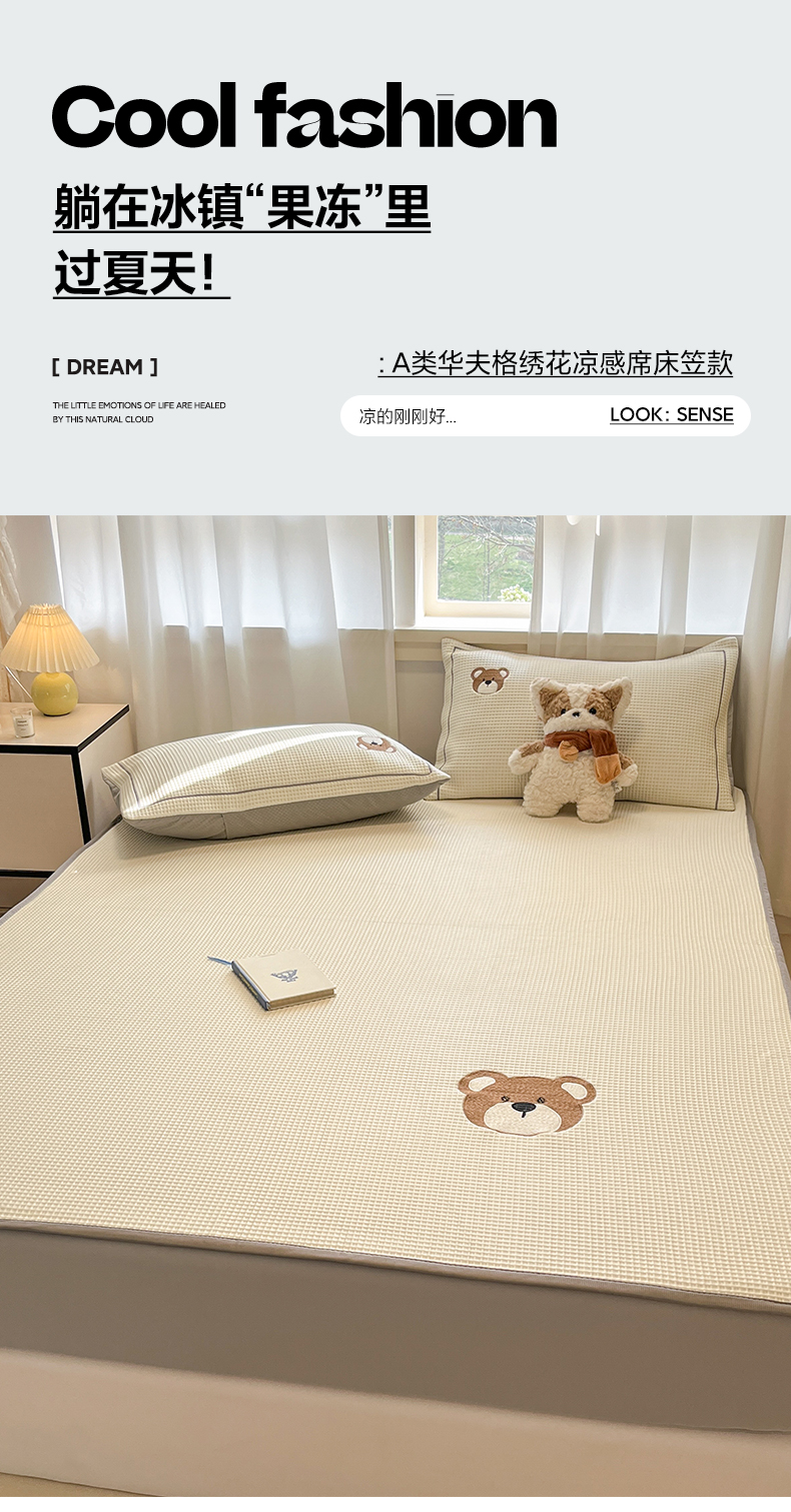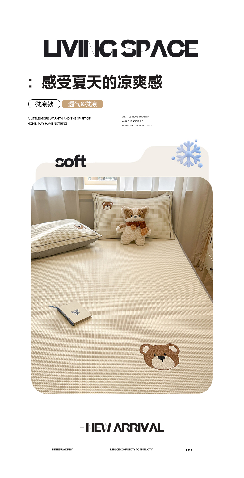 商品名称:雅居纺家纺 2026新款A类加厚三明治底华夫格绣花凉感席床笠款凉席席子 床笠款-熊出没
