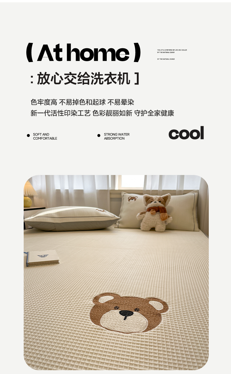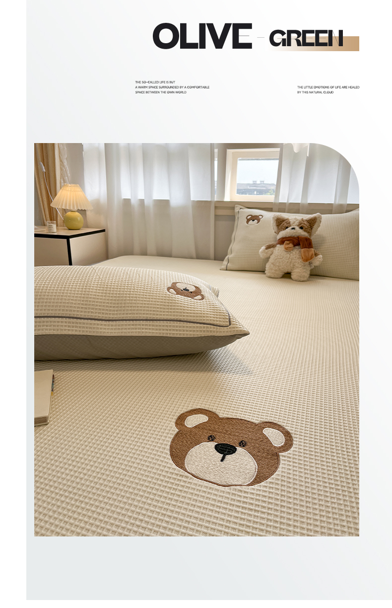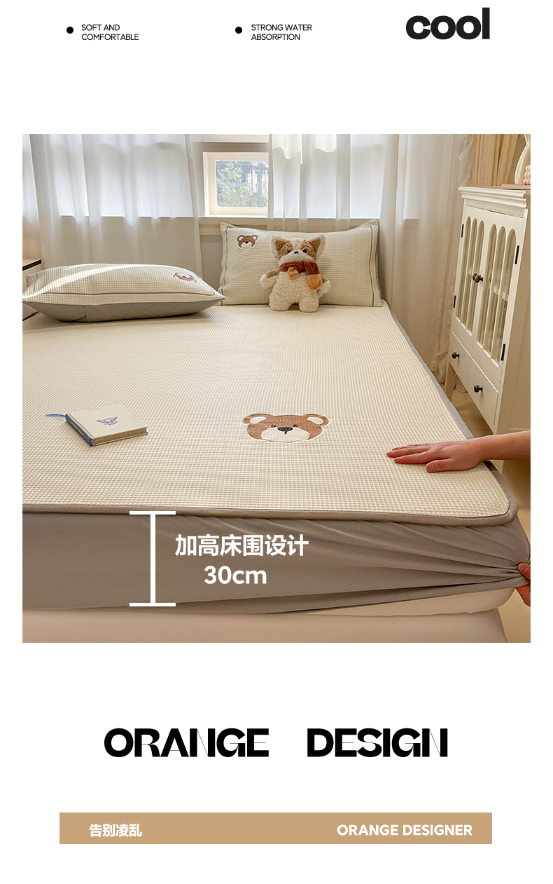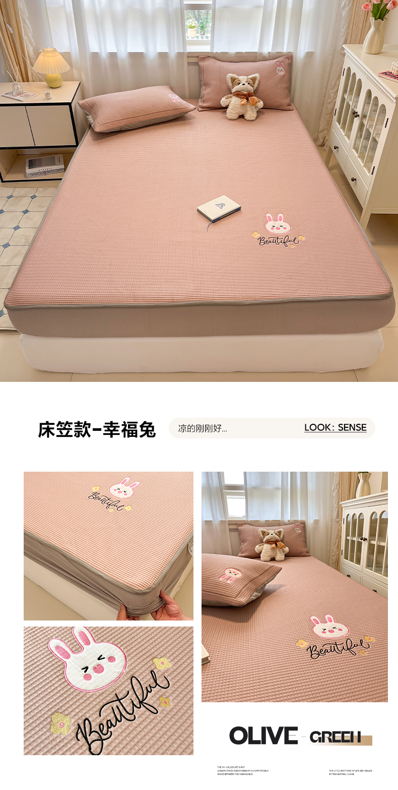 商品名称:雅居纺家纺 2026新款A类加厚三明治底华夫格绣花凉感席床笠款凉席席子 床笠款-熊出没