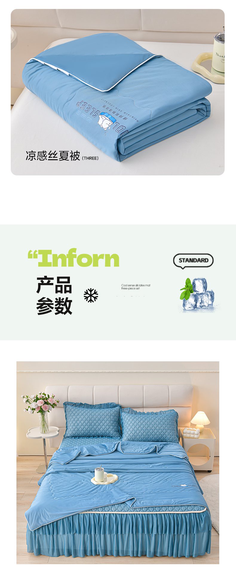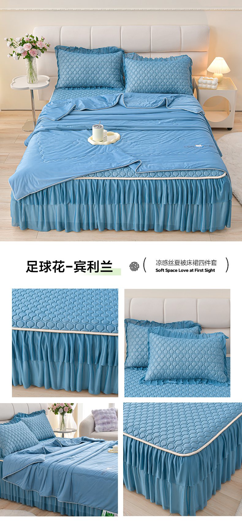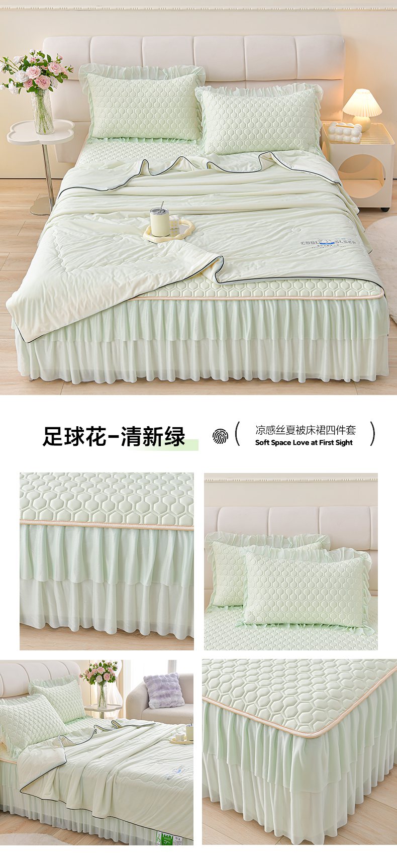 (总)畅畅家纺 2026新款夏季凉感丝足球花纯色凉席席子三件套夏被四件套