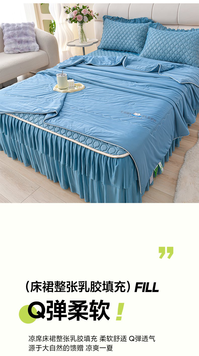(总)畅畅家纺 2026春夏新款聚乙烯中分子凉感冰感凉豆豆凉席席子床裙三件套幸运草,幸运草-粉,幸运草-灰,幸运草-蓝,幸运草-绿