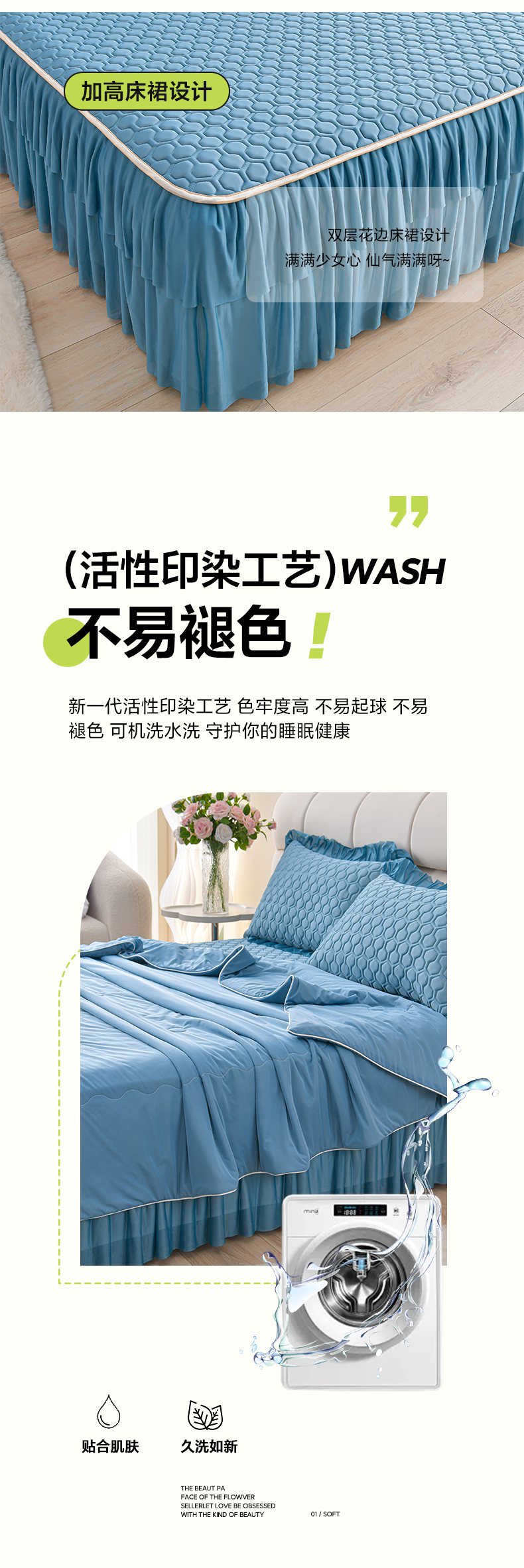 (总)畅畅家纺 2026春夏新款聚乙烯中分子双面提花高克重凉感冰感凉豆豆床裙三件套-经典玫瑰,经典玫瑰-粉,经典玫瑰-灰,经典玫瑰-蓝,经典玫瑰-绿