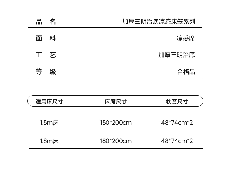 180x200cm床笠款凉席+枕套一对
