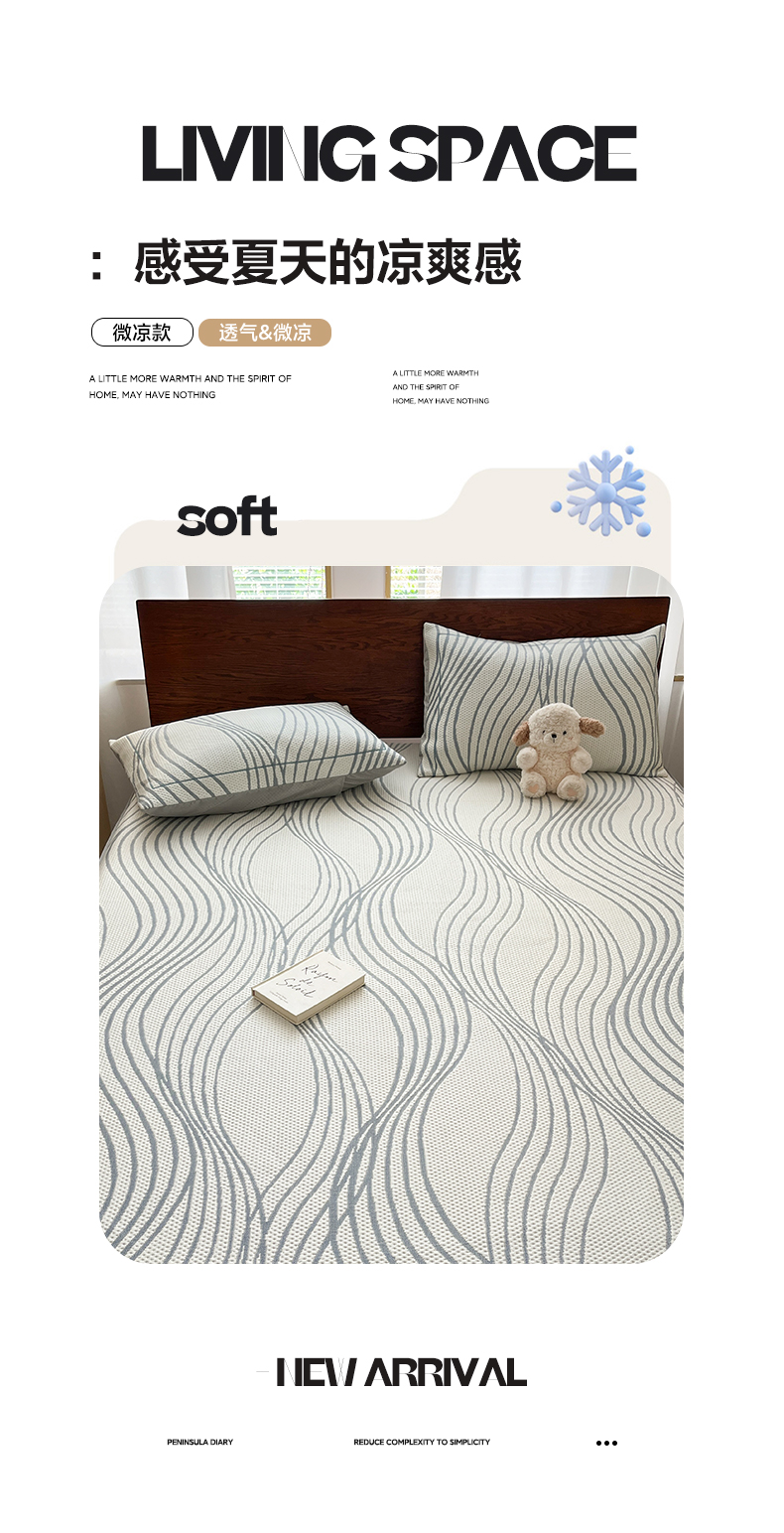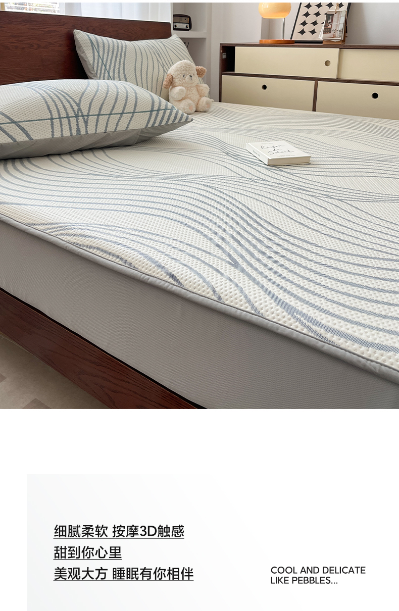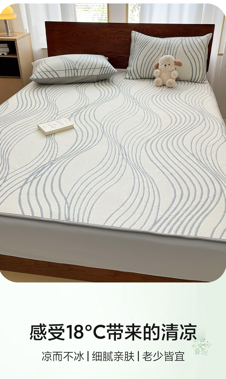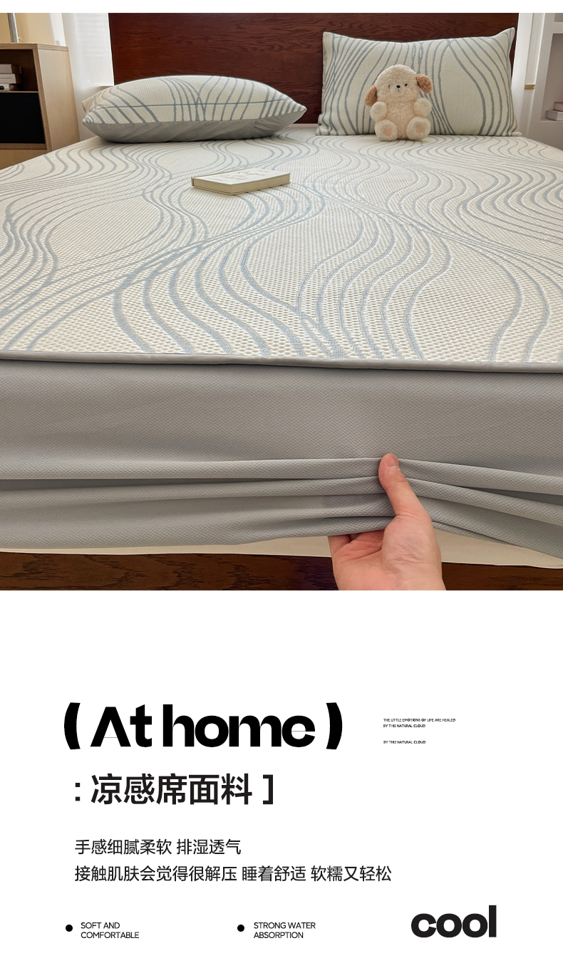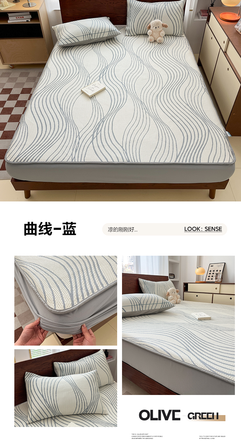 商品名称:雅居纺家纺 2026新款加厚三明治底凉感豆豆简约款凉感席床笠款凉席席子 曲线-蓝
