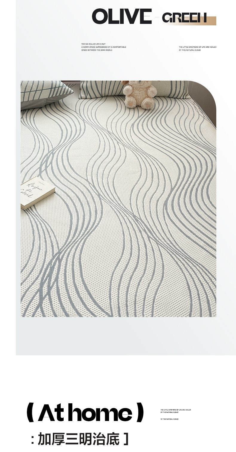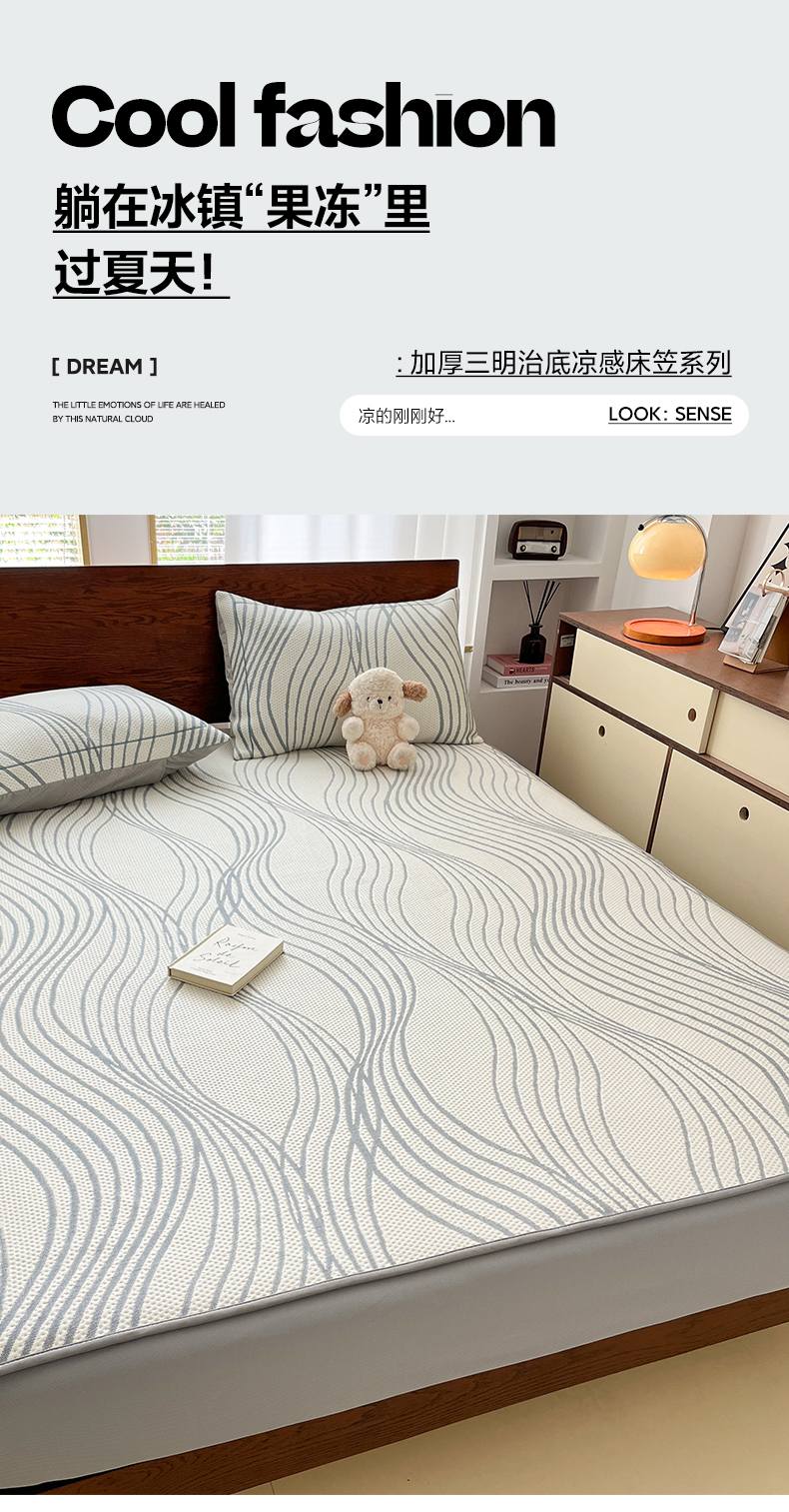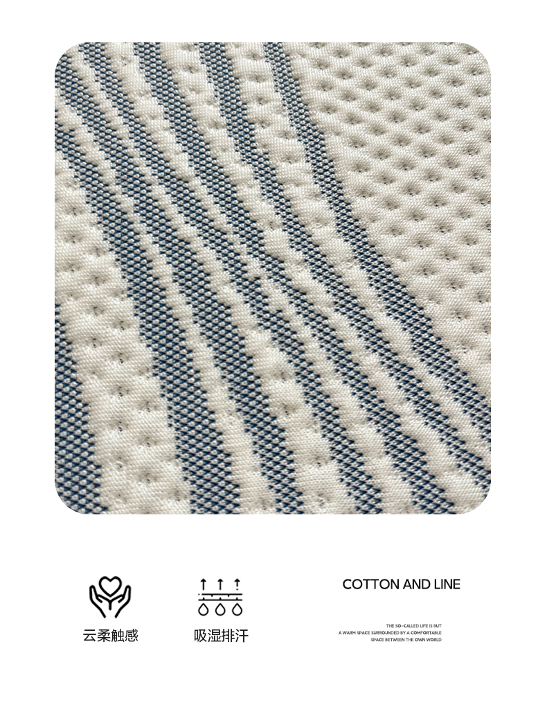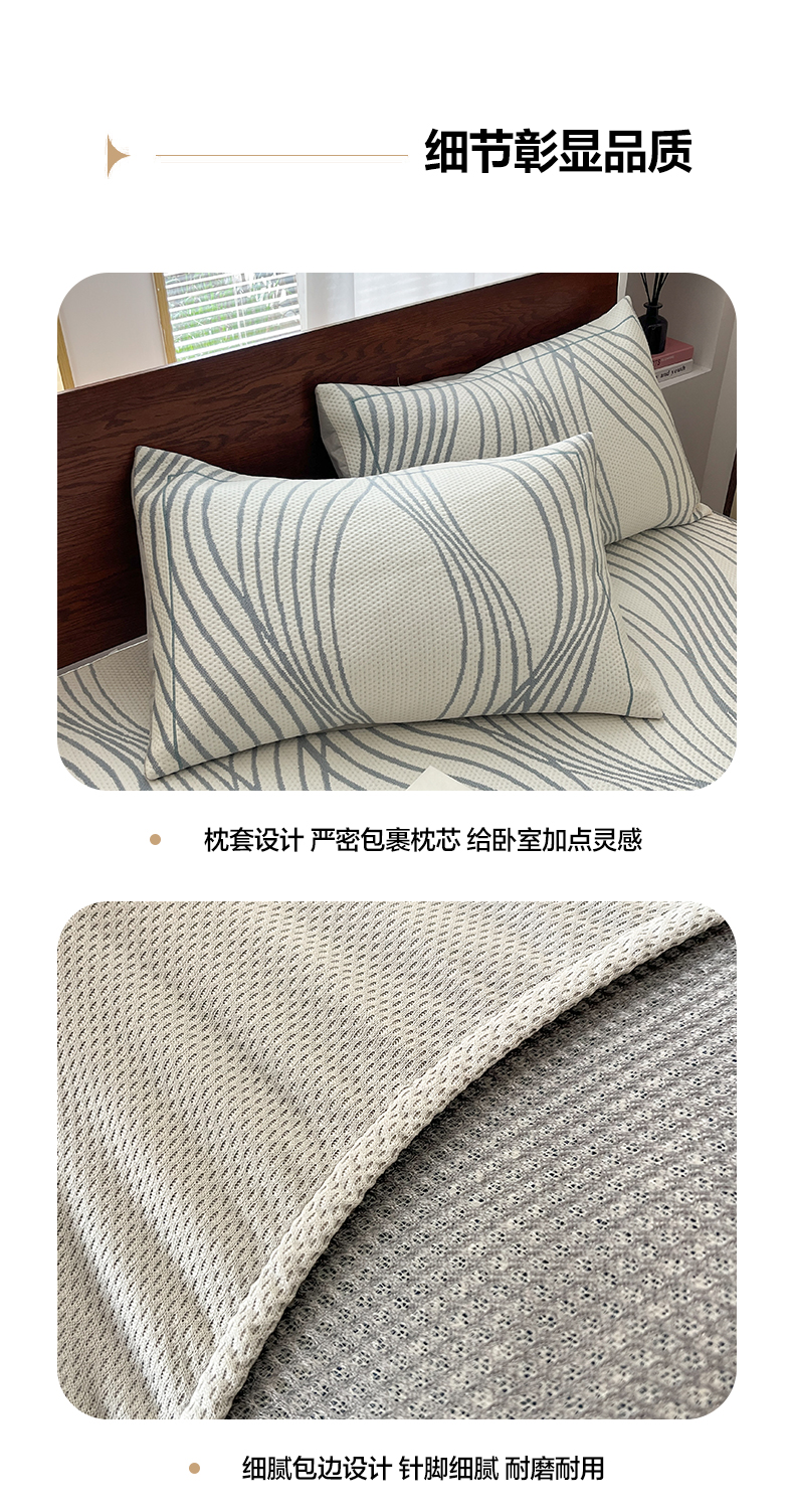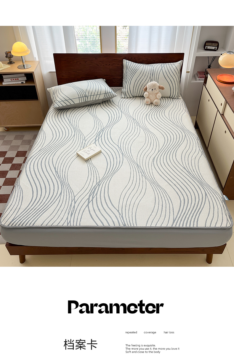 商品名称:雅居纺家纺 2026新款加厚三明治底凉感豆豆简约款凉感席床笠款凉席席子 曲线-蓝