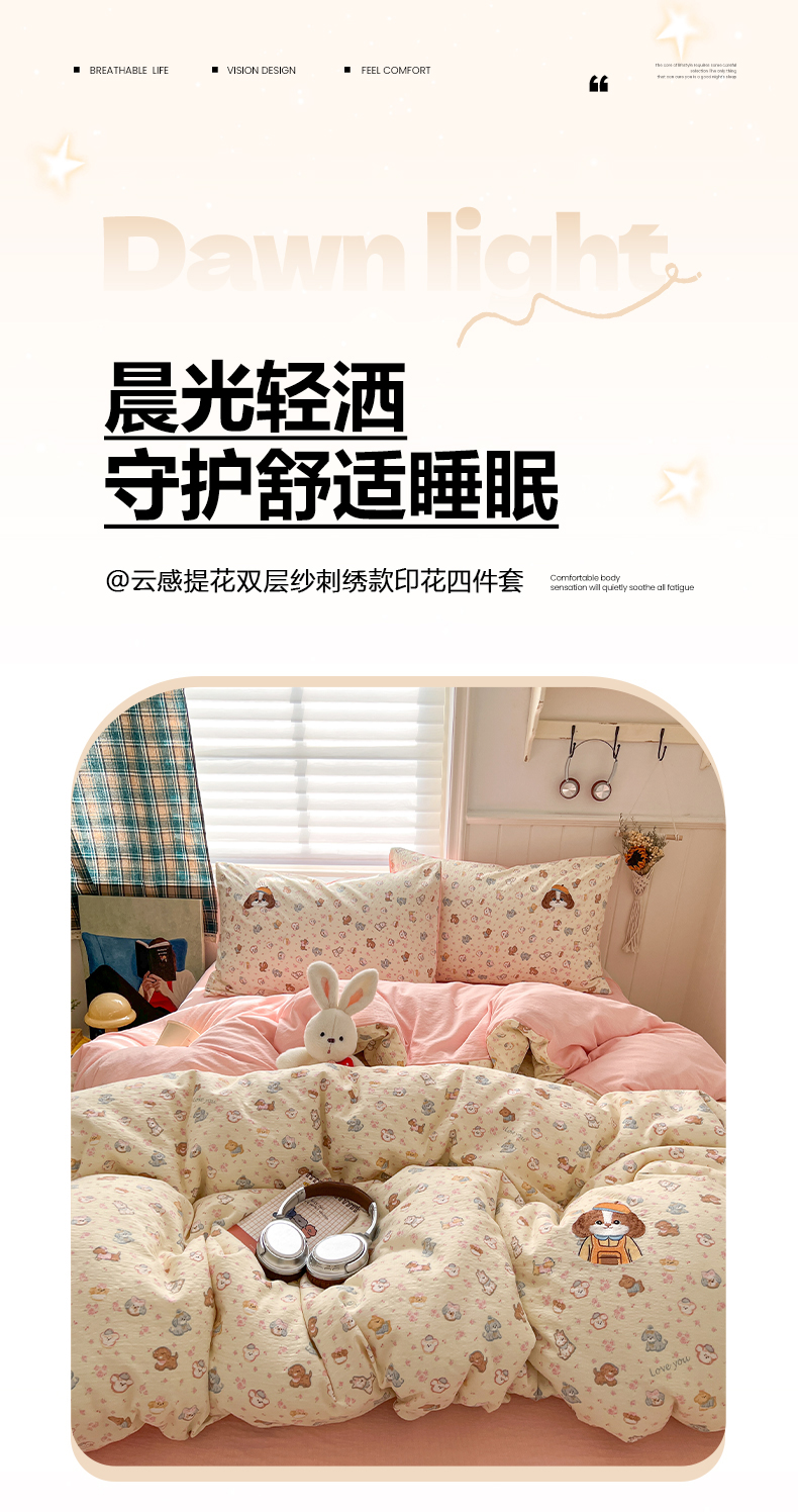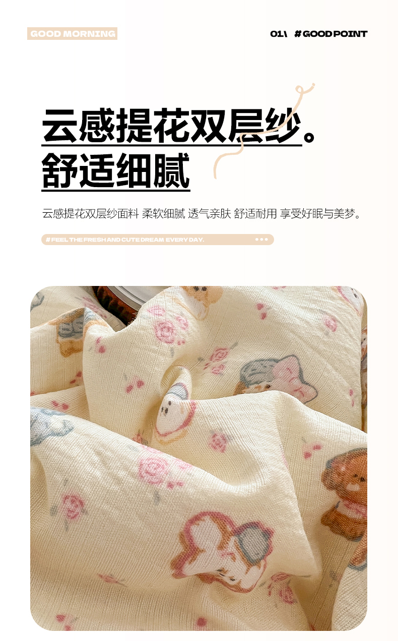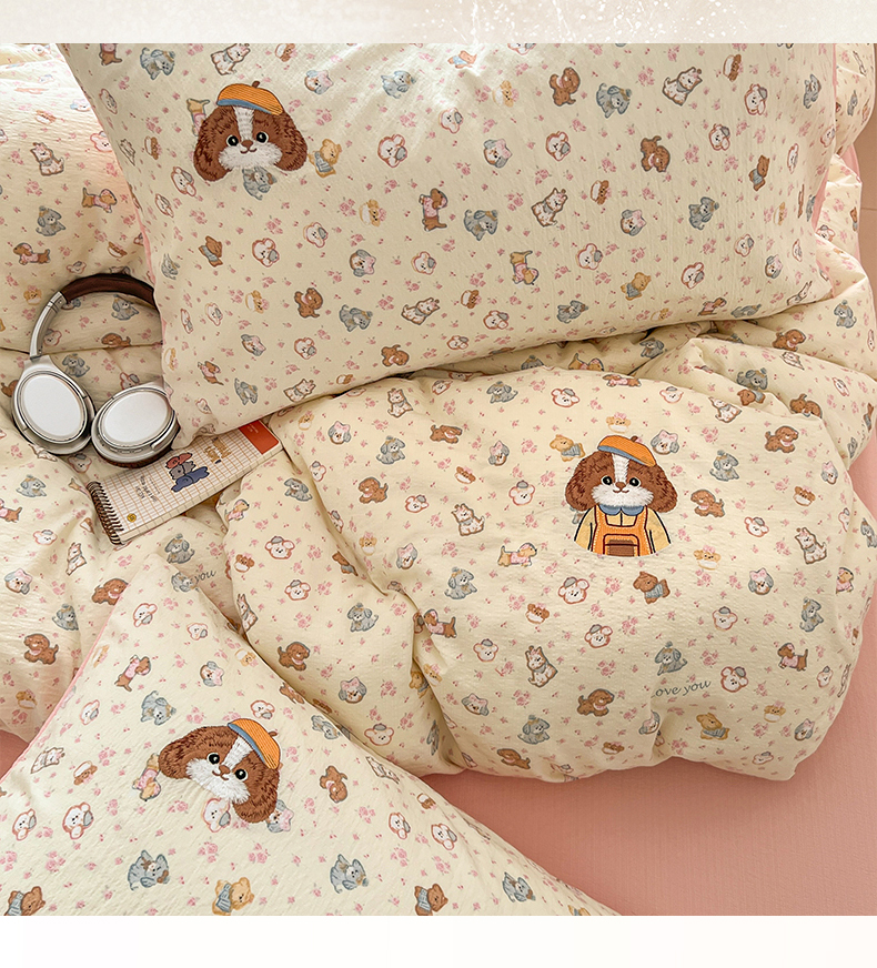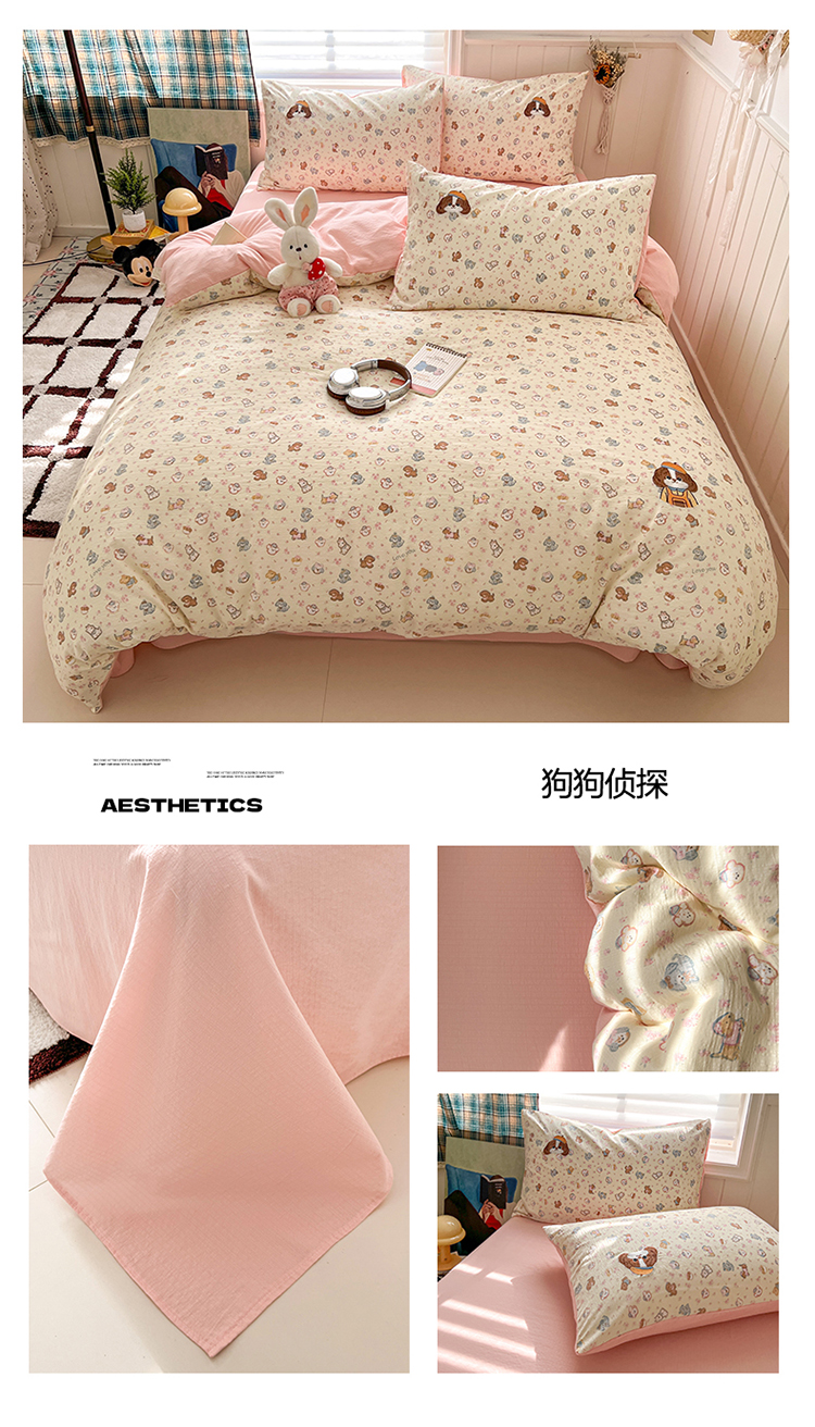 当前位置: 91家纺网 > 商品网购 > 床品套件 > 四件套 > 其它四件套 > 妖妖家纺 2026小清新软糯双层纱刺绣四件套 狗狗侦探-刺绣
