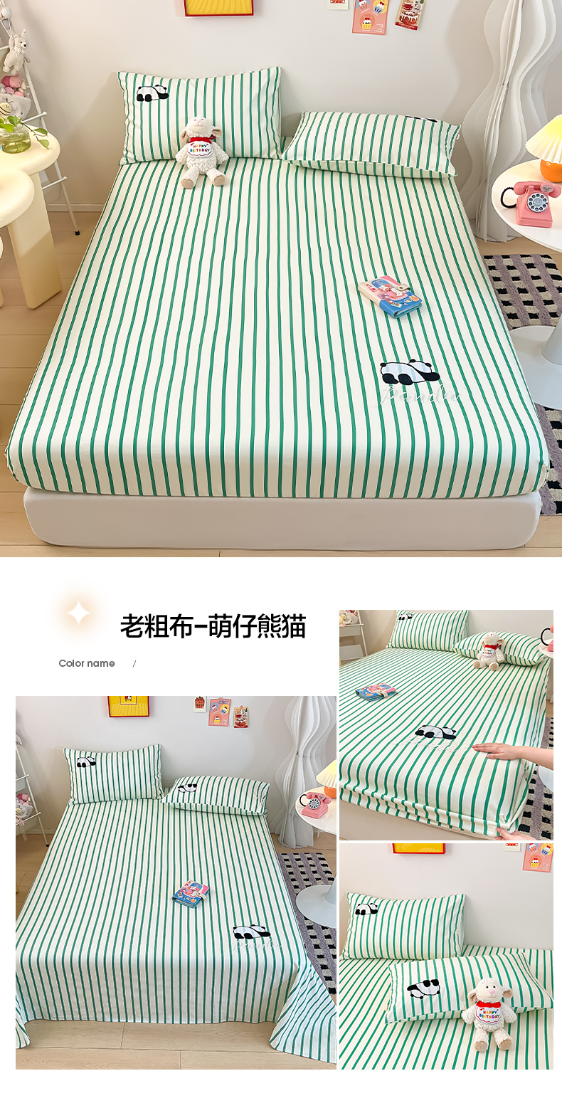 雅居纺家纺 2026新款全棉绣花A类老粗布床笠单件床笠单品凉席席子 老粗布-奔跑小狗