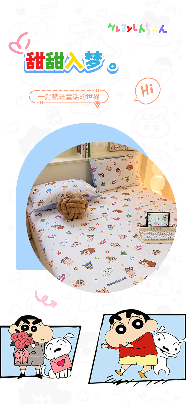 • 91家纺网 家纺一手货源 找家纺 博雅 2026新款蜡笔小新正版授权全棉纯棉小版单床笠床笠单件 小版-绘画蜡笔小新