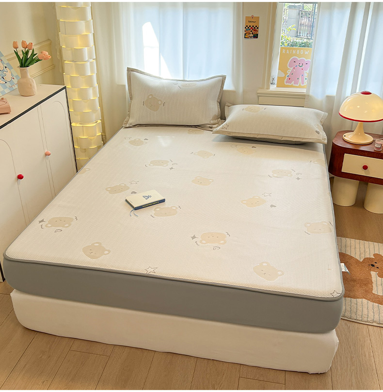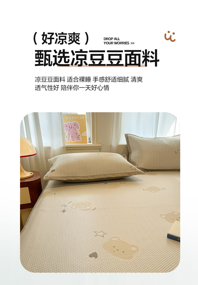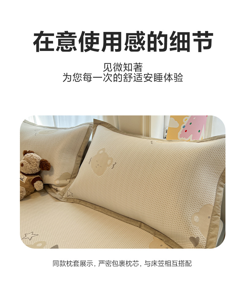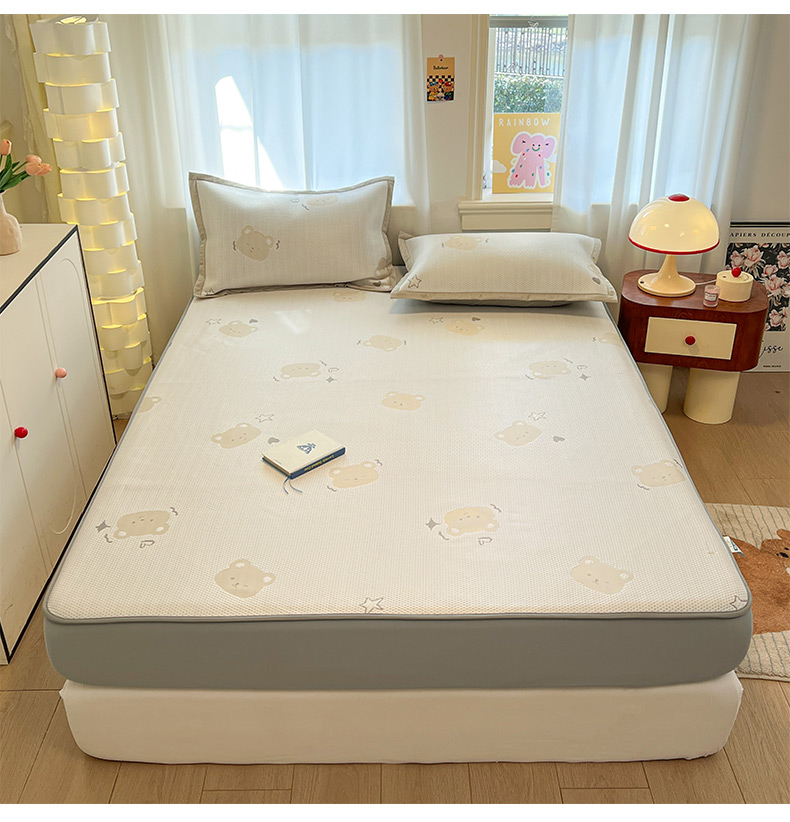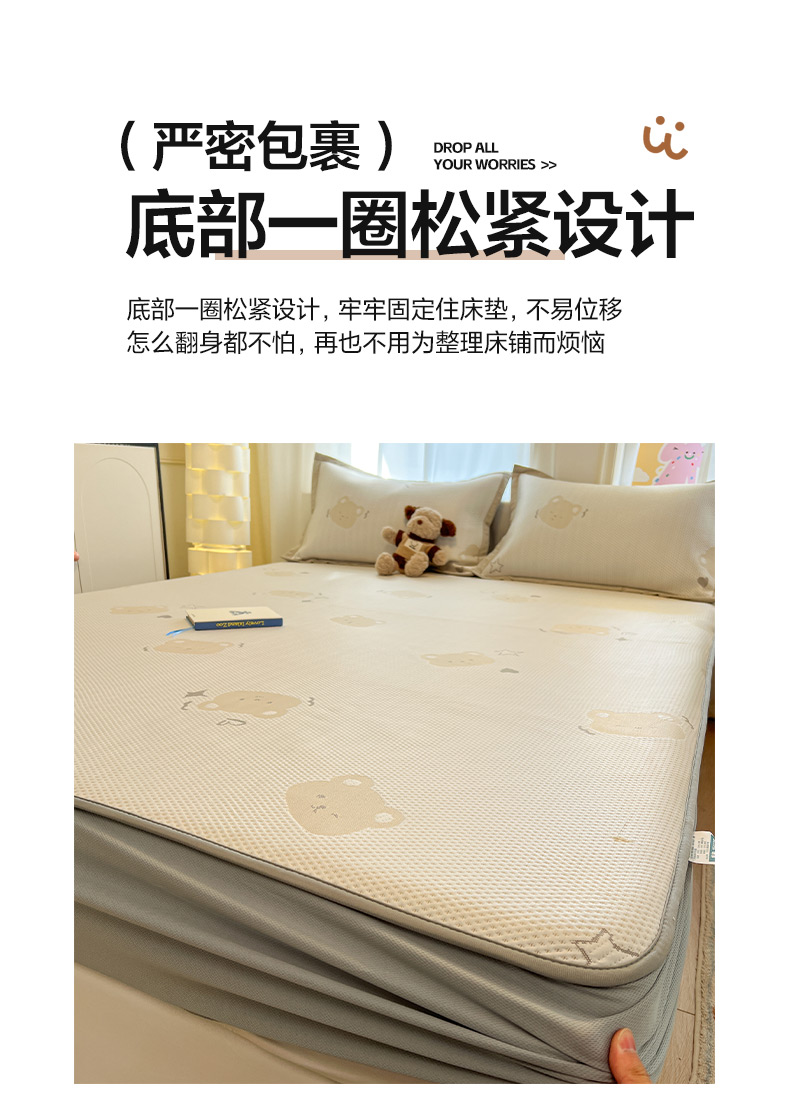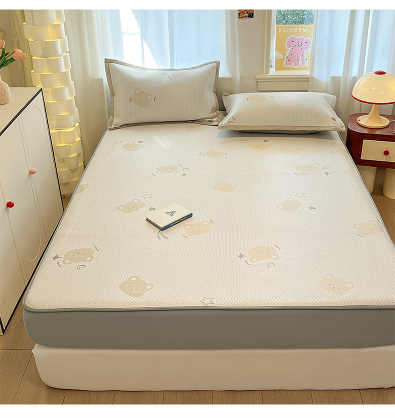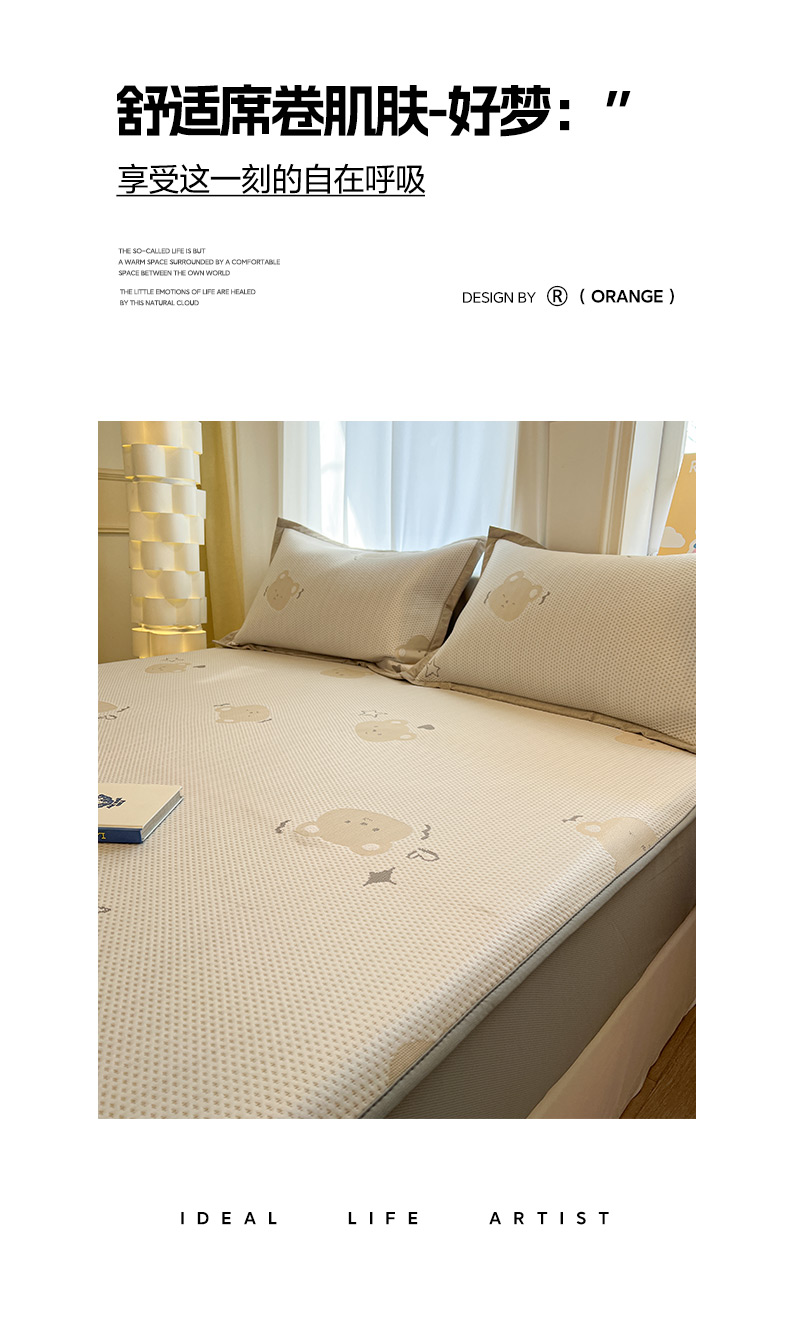 商品名称:雅居纺家纺 2026新款A类加厚三明治底提花小清新凉感席床笠款凉席席子 星星小熊