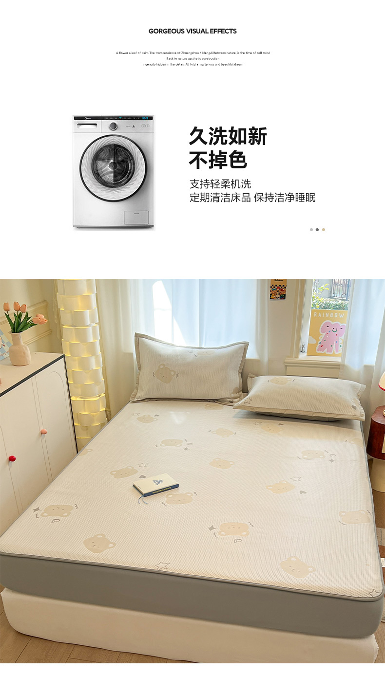 (总)雅居纺家纺 2026新款A类加厚三明治底提花小清新凉感席床笠款凉席席子,粉小兔,蝴蝶结猫咪,领结小猫,平安熊猫,山茶花,太空星球,晚安小狗,小熊熊,星星小熊,悠闲花园