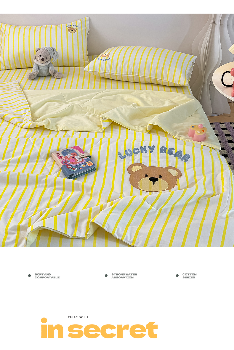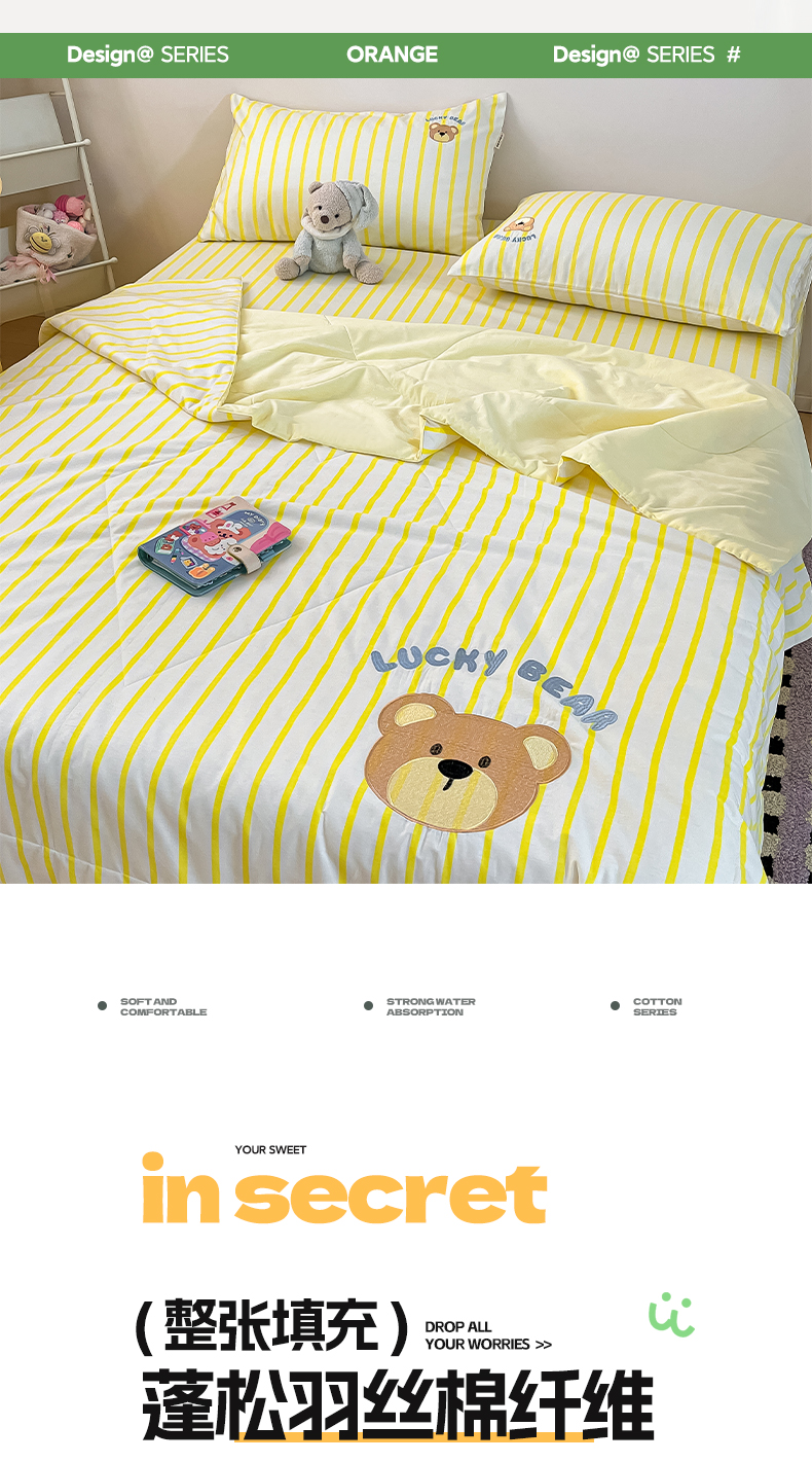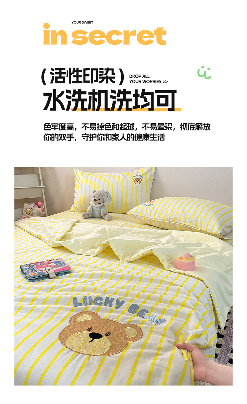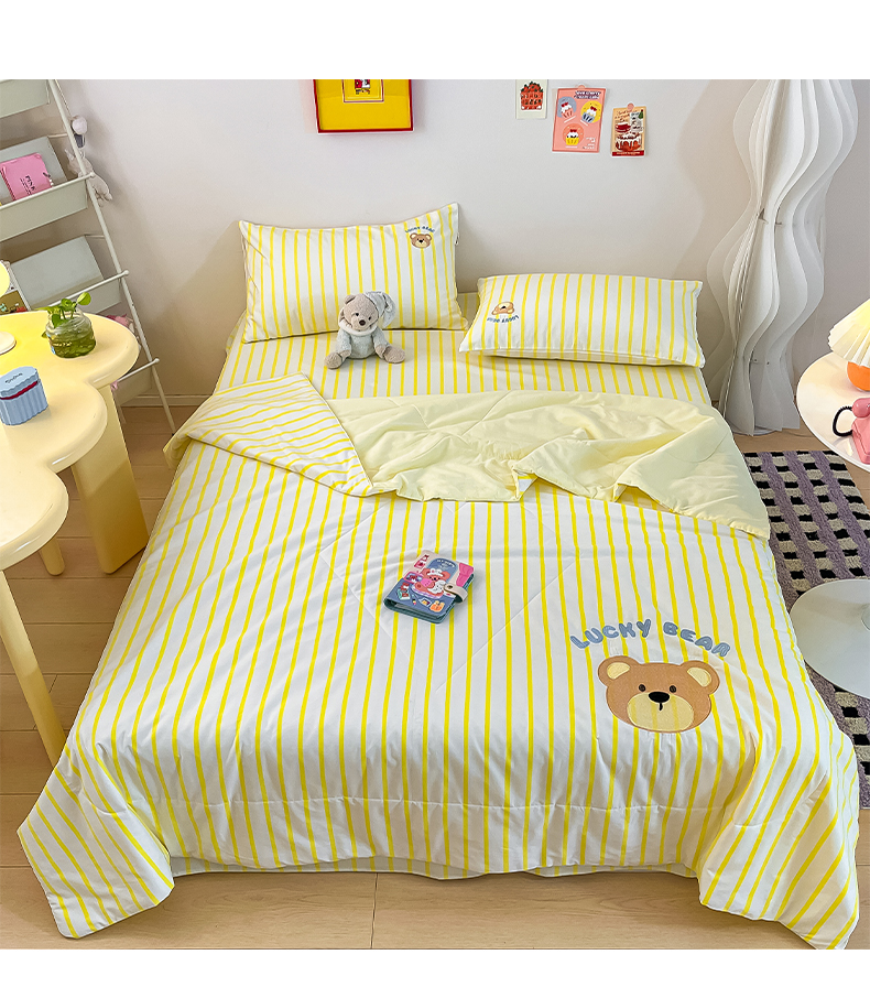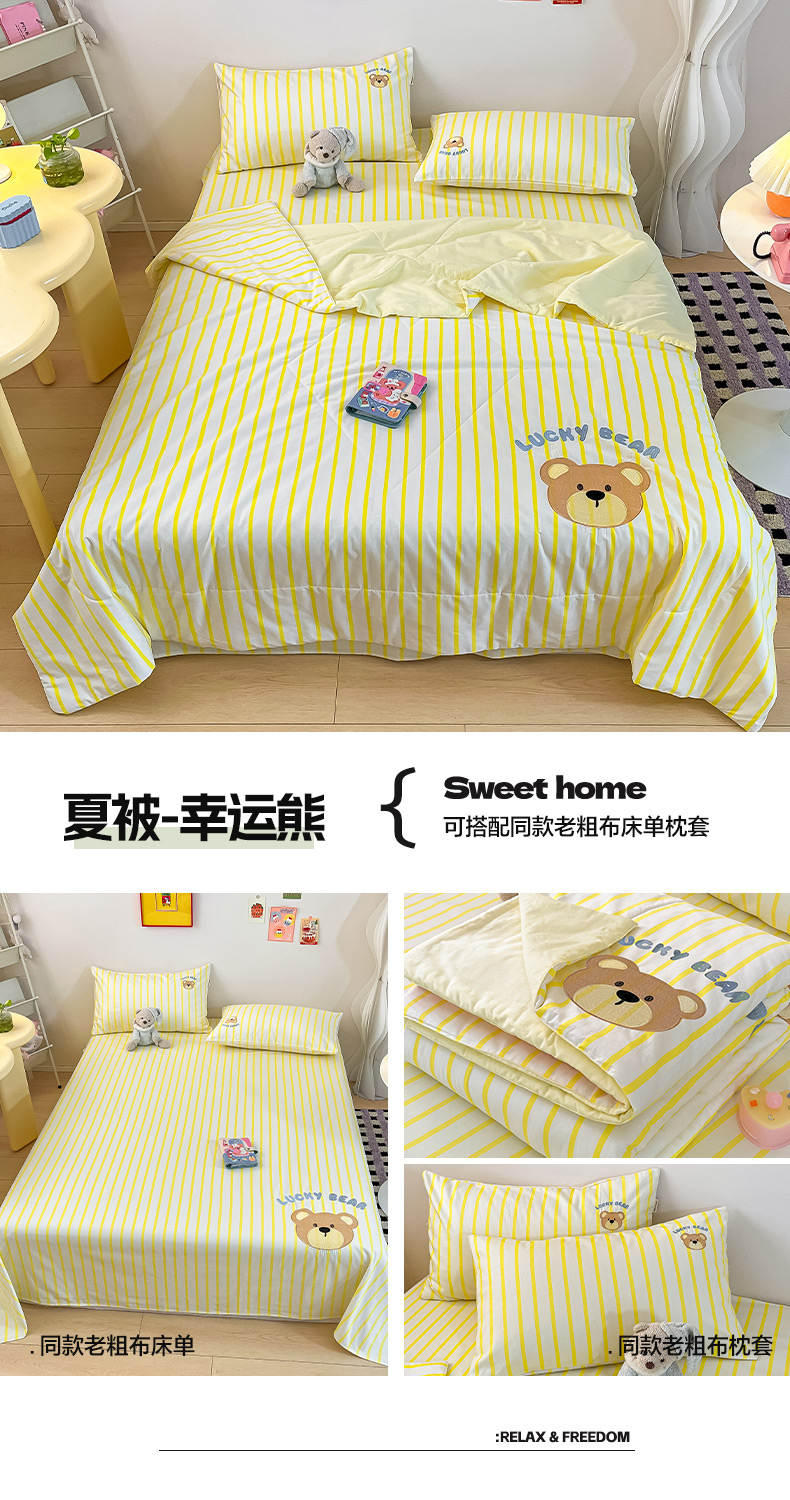 • 91家纺网 家纺一手货源 找家纺 雅居纺家纺 2026新款全棉绣花夏被夏凉被空调被可配同款老粗布四件套 夏被-幸运熊
