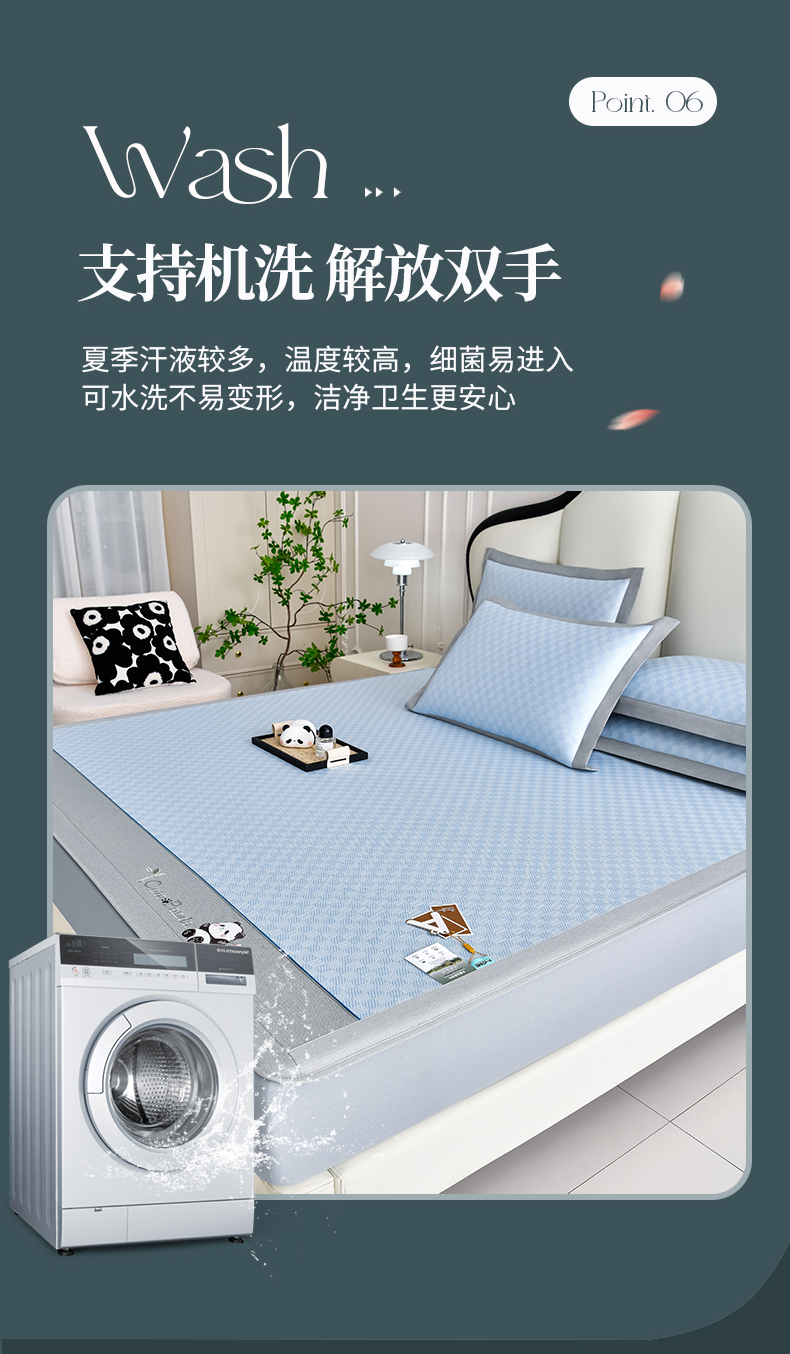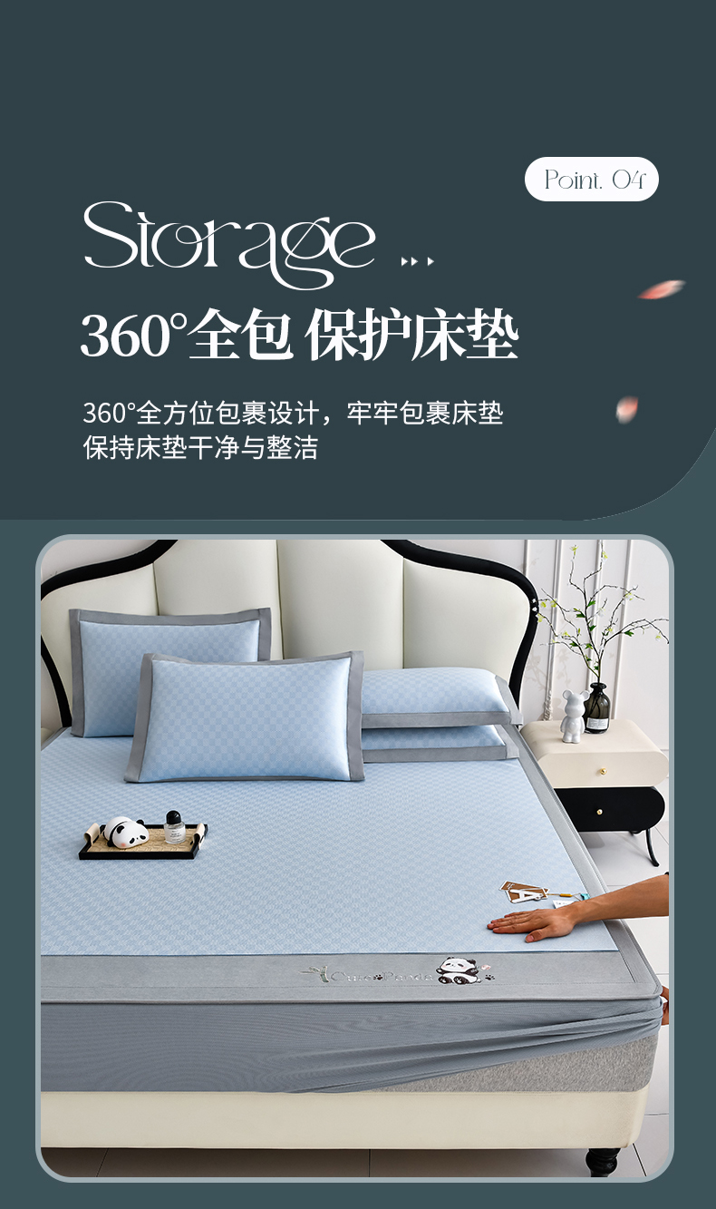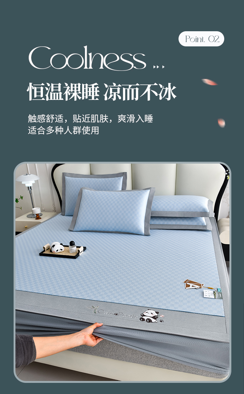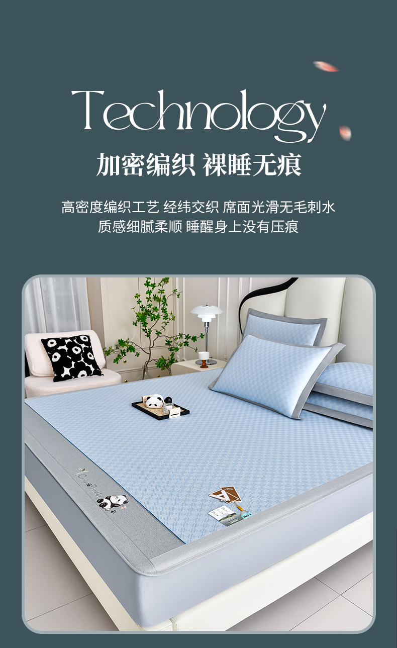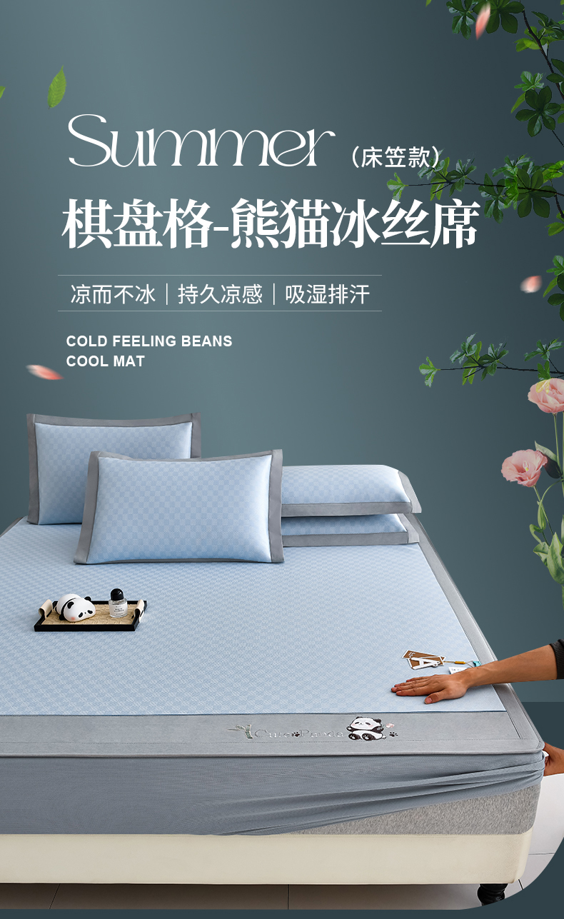 小牛席业 2026新款棋盘格-熊猫凉感冰丝席凉席席子系列(床笠款) 蓝色