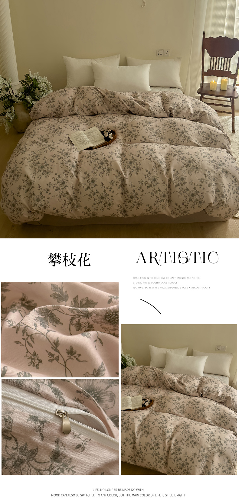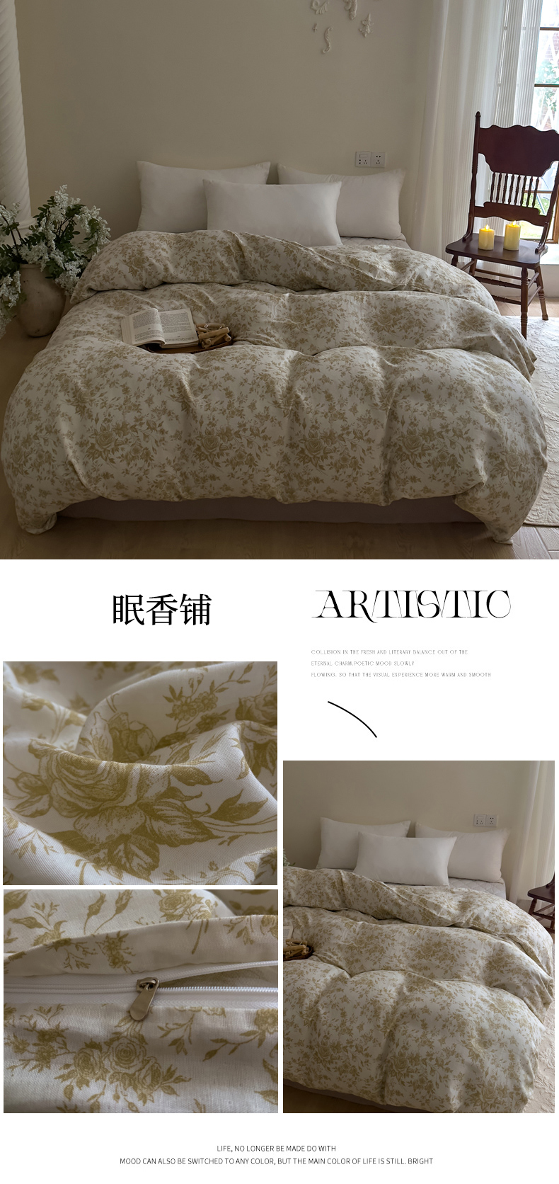 (总)DoDo 兜兜 2026新款全棉纯棉复古双层纱四件套系列(可定做尺寸),攀枝花,眠香铺,墨蝶,青竹漫-灰,青竹漫-米,睡花间,叶语-灰