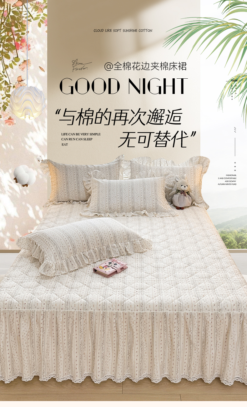 (总)忘忧草 2025新款色织水洗全棉床笠式床裙夹棉款纯棉花边床笠-花颜系列,花颜-白,花颜-粉,花颜-灰,花颜-咖,花颜-蓝,花颜-绿