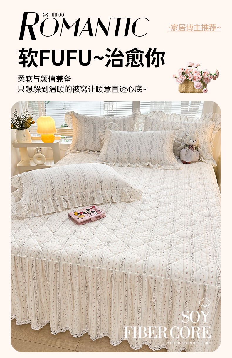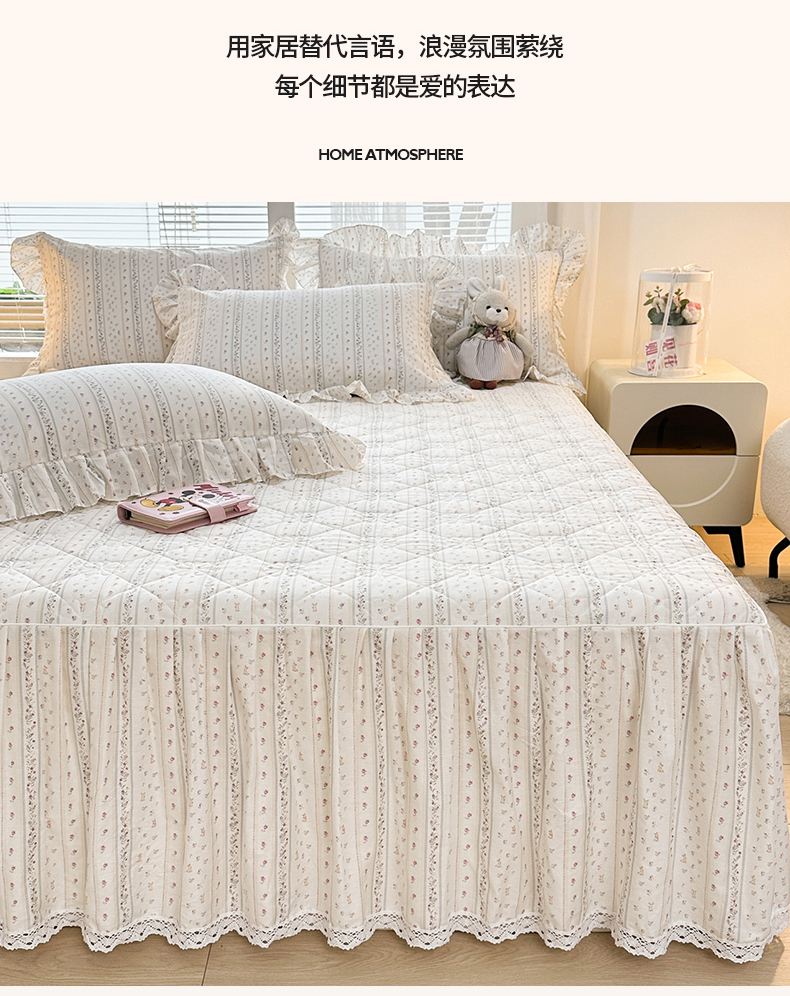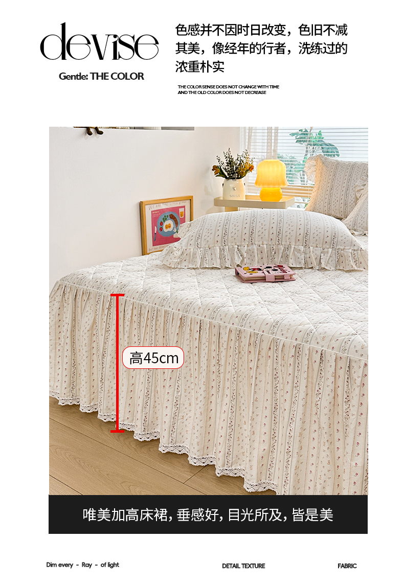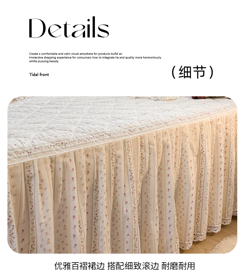 忘忧草 2026春夏新款全棉纯棉夹棉印花床裙床裙单件 蔷薇花影