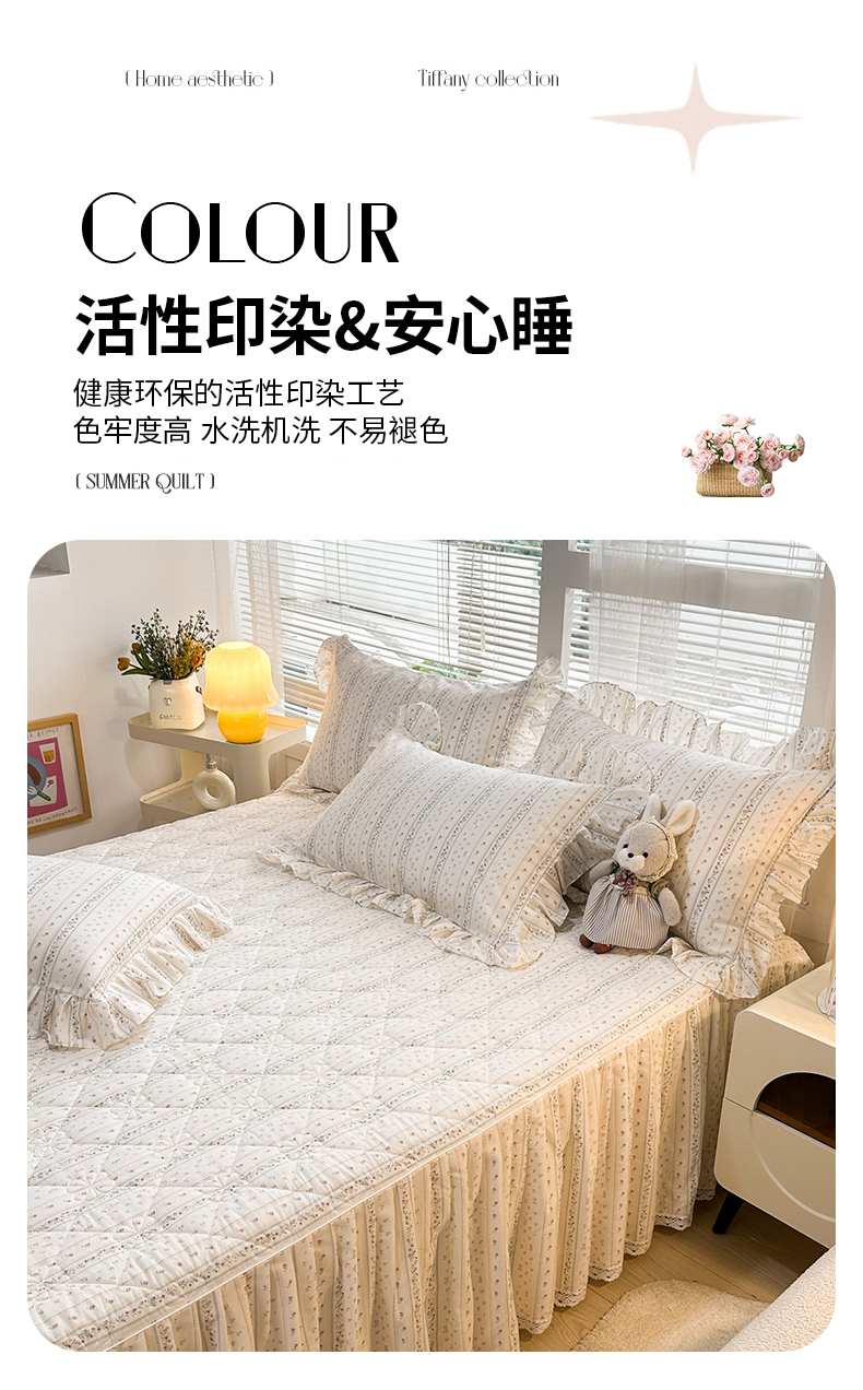 (总)忘忧草 2025亲肤水洗棉夹棉床裙--小清新系列,安娜花园,蝶恋花,蝴蝶结,郁金香,茶艺师,陌上花开,心动兔兔