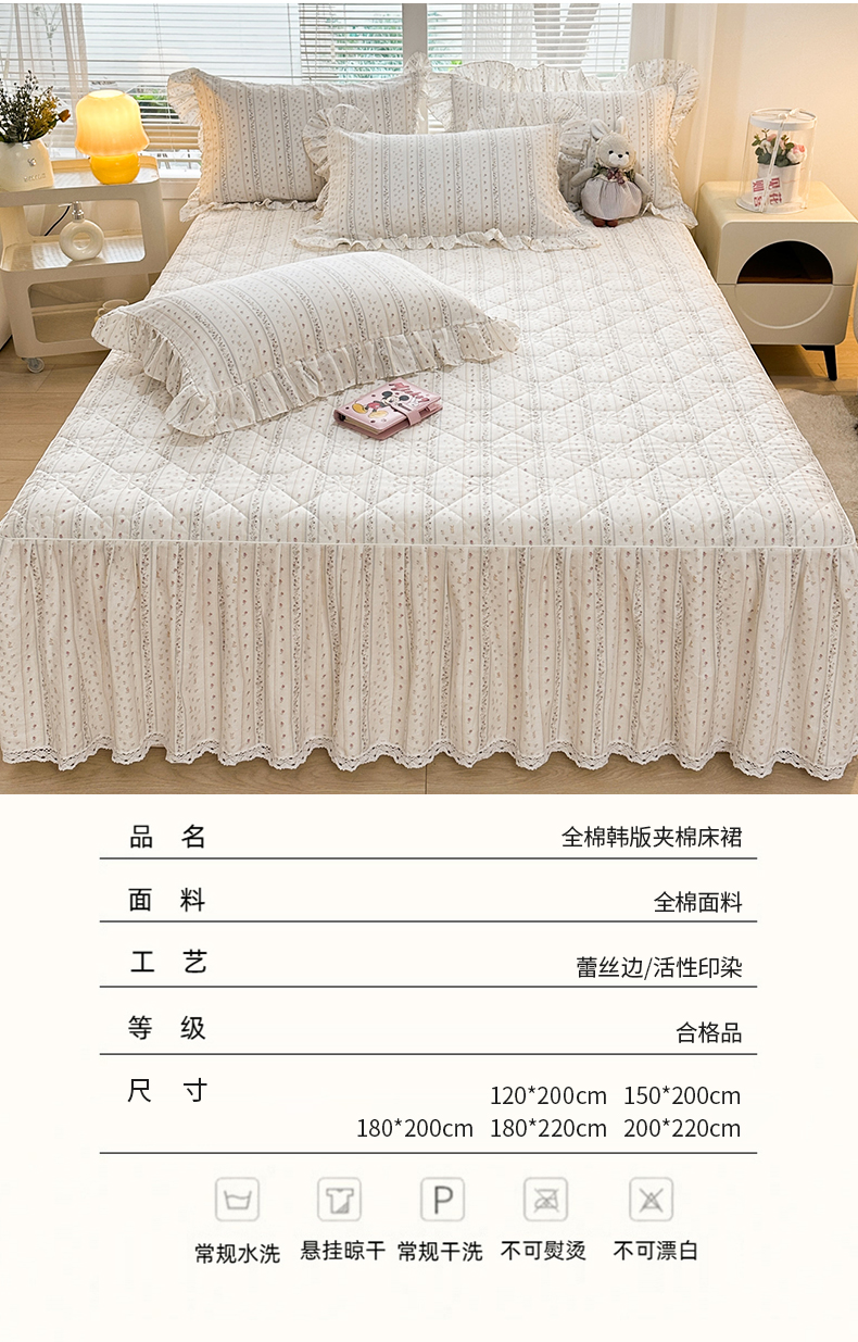 商品名称:忘忧草 2026春夏新款全棉纯棉夹棉印花床裙床裙单件 蔷薇花影