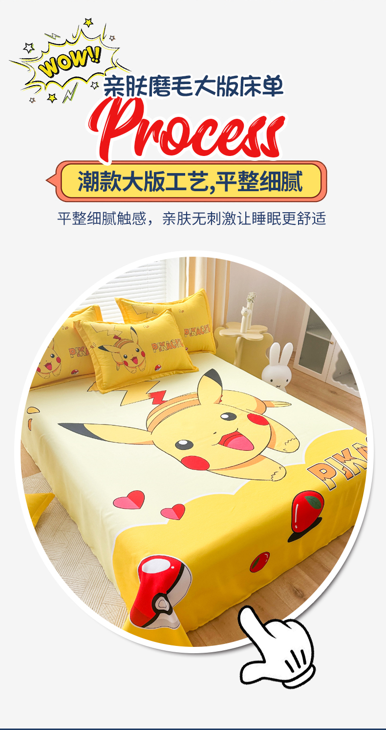 • 91家纺网 家纺一手货源 找家纺 一电 2026新款卡通床单单件被单学生宿舍被罩三件套单人儿童上下床床单-磨毛床单 第一批 奔跑皮卡丘