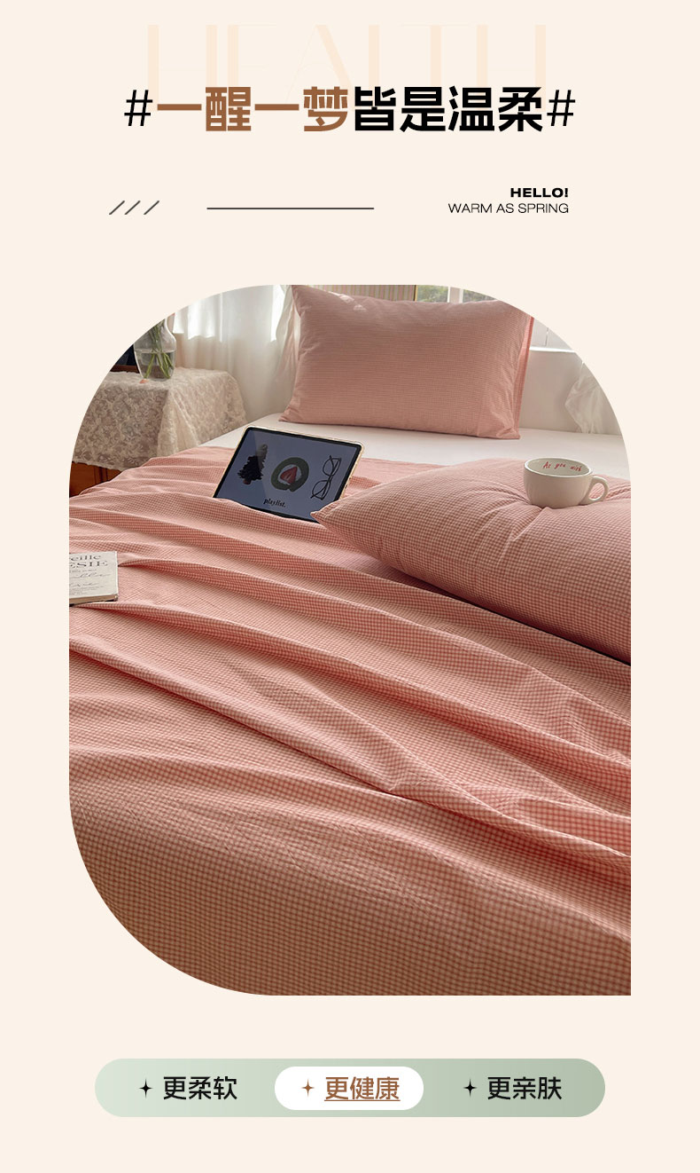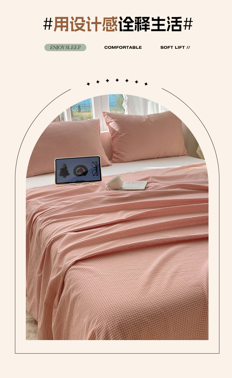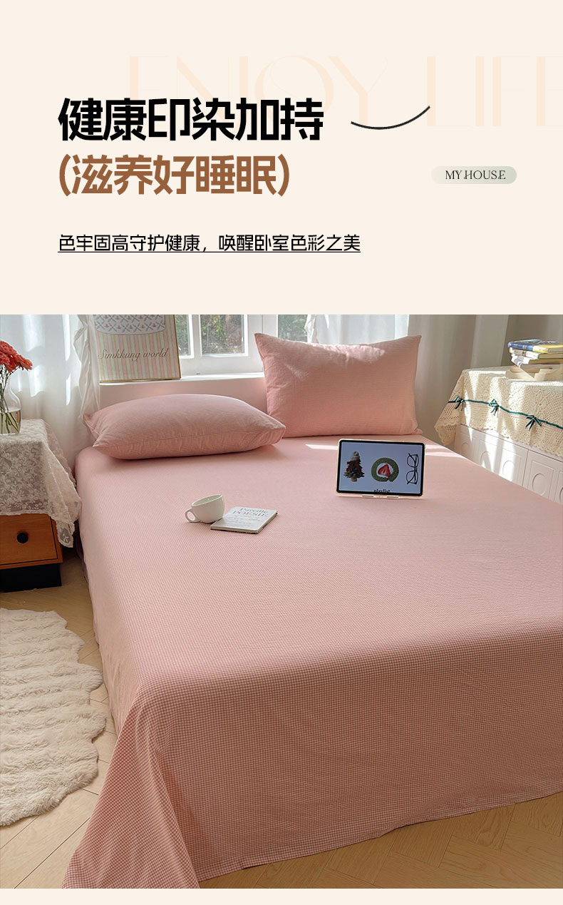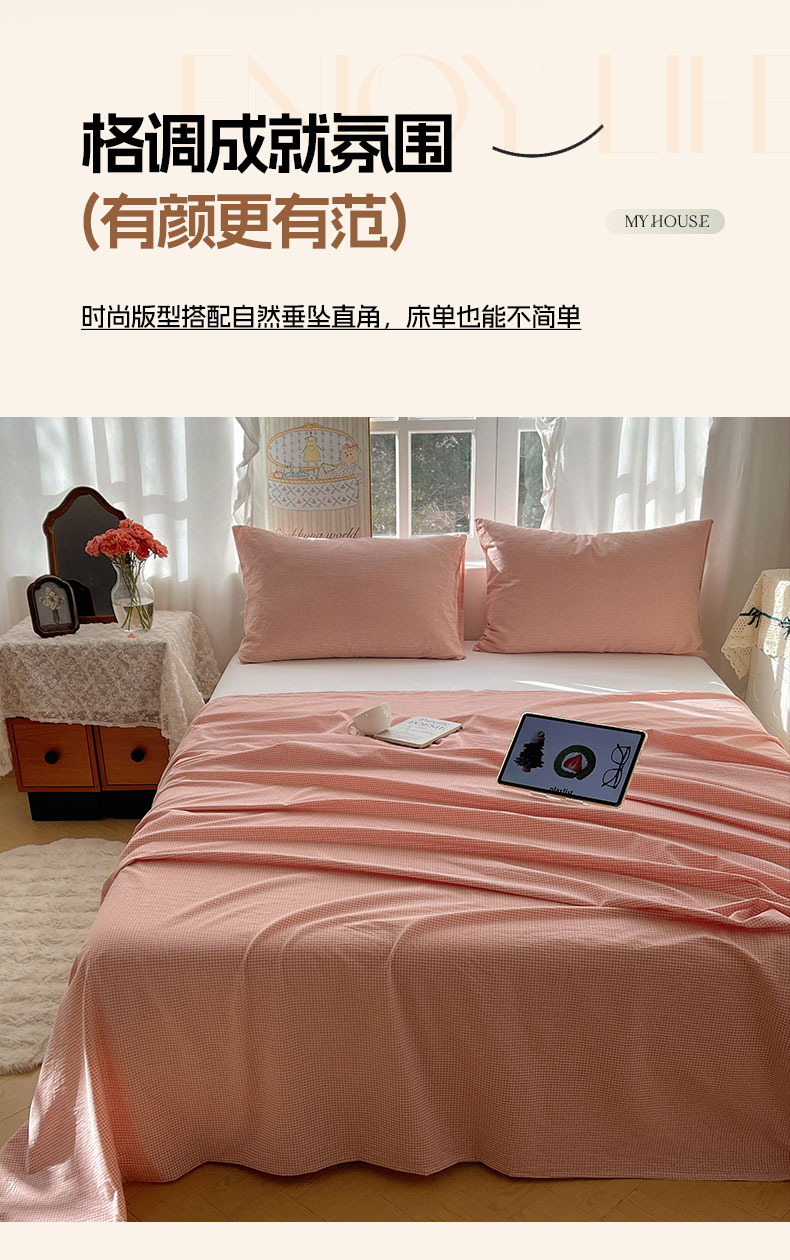 商品名称:六巷胡同 2026新款A类全棉纯棉水洗棉色织格子单品床单 床单单件 觅影-粉格