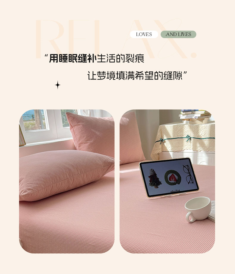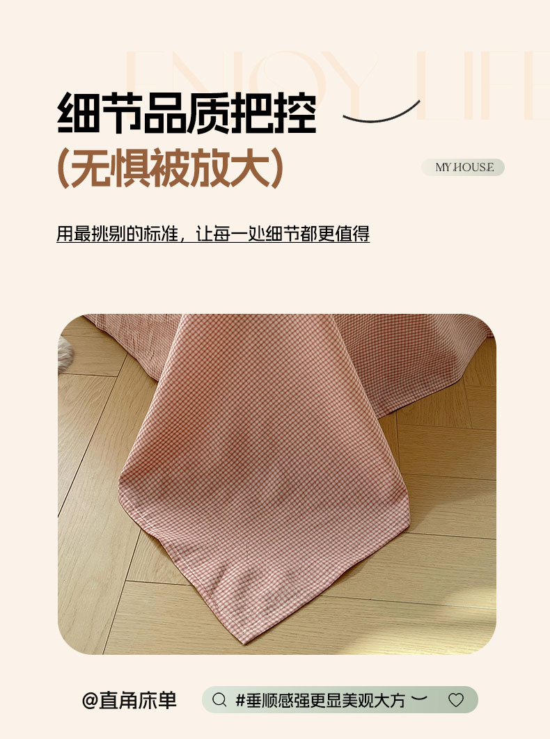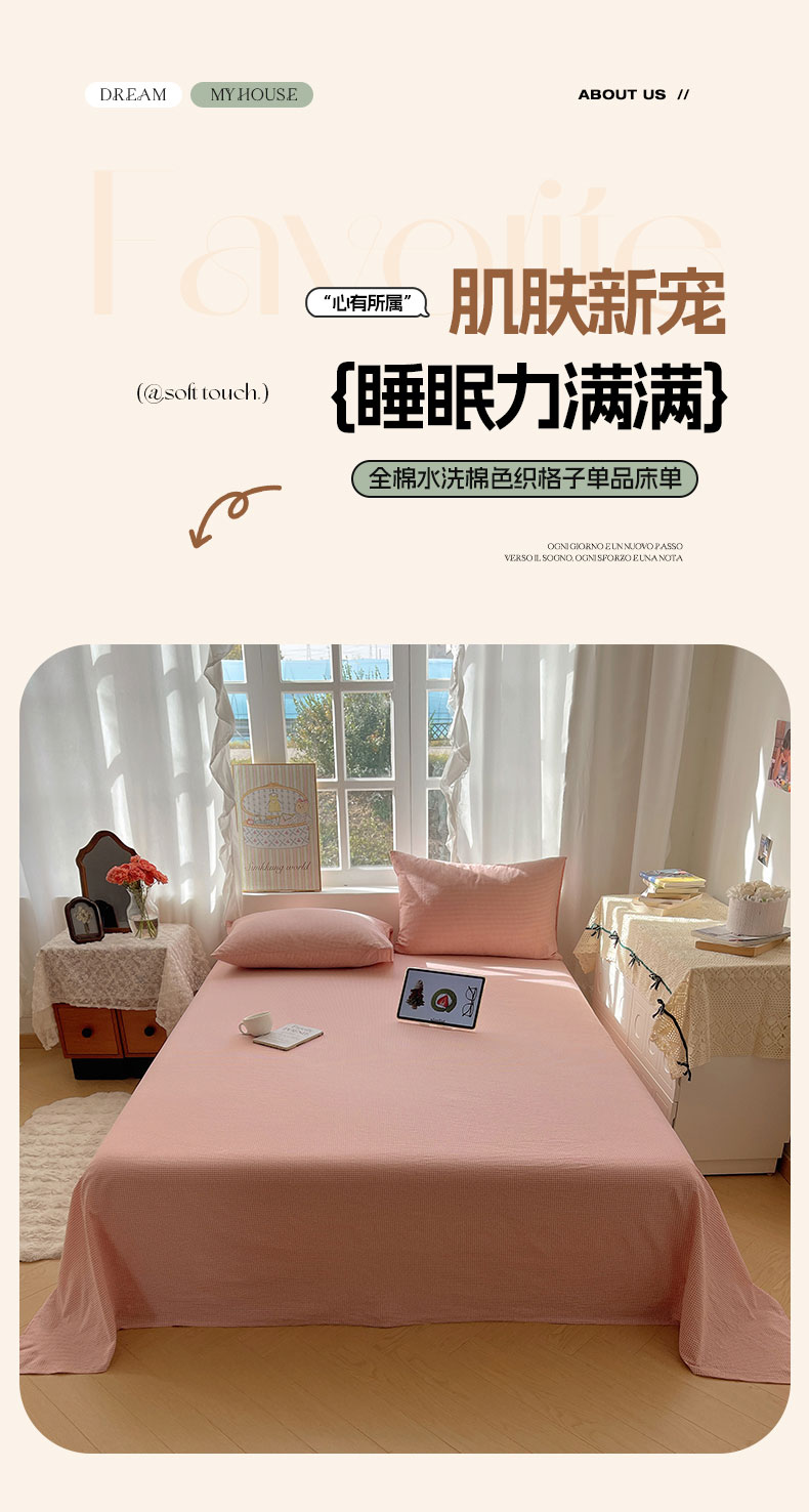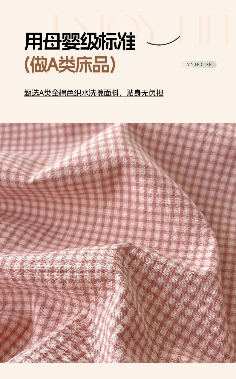 商品名称:六巷胡同 2026新款A类全棉纯棉水洗棉色织格子单品床单 床单单件 觅影-粉格