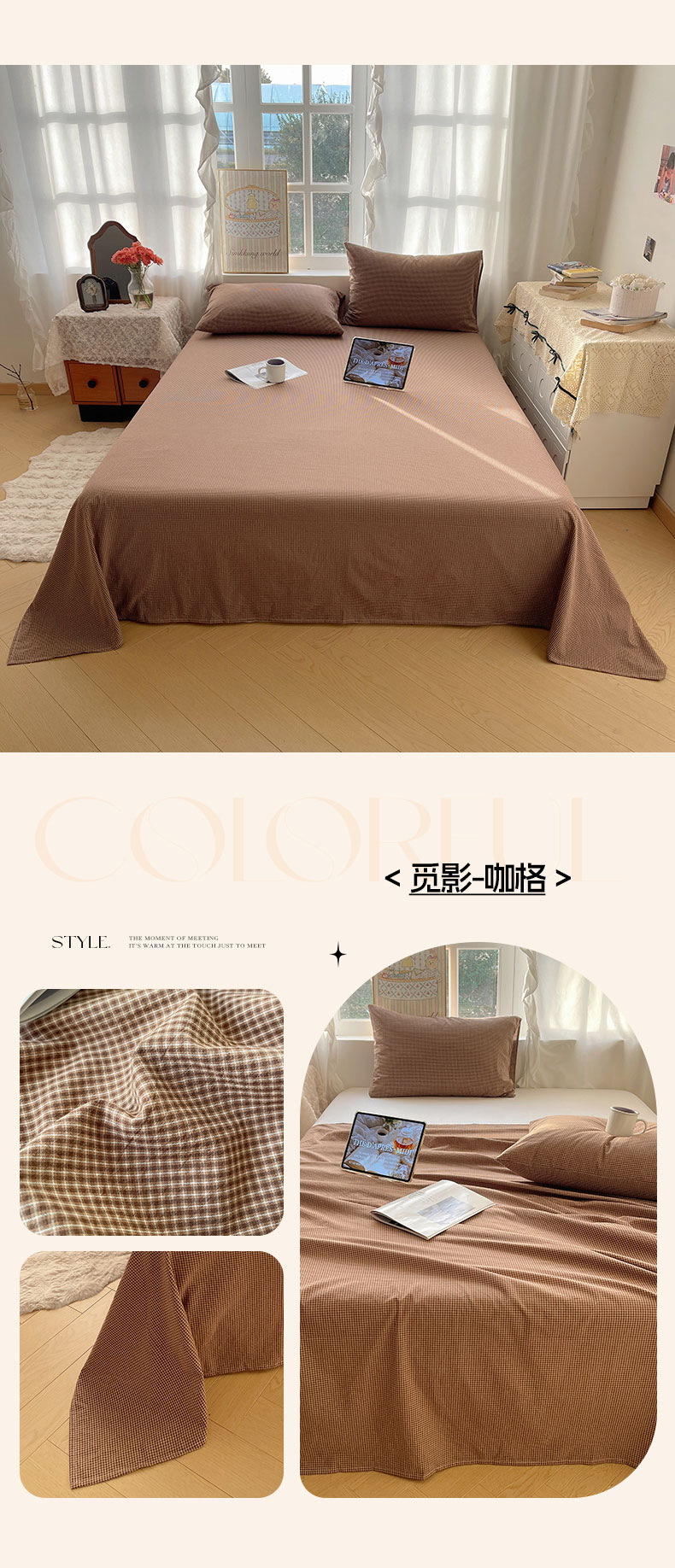 (总)六巷胡同 2026新款A类全棉纯棉水洗棉色织格子单品床单 床单单件,追光-蓝格,川奈-咖格,觅影-粉格,觅影-黑格,觅影-咖格,觅影-棕格,巷往-红格,巷往-灰格,巷往-橘格,巷往-蓝格,巷往-绿格,悦野-白格,悦野-灰格,知序-灰格,知序-橘格,知序-蓝格,知序-绿格,逐风-红格,逐风-灰格,逐风-咖格,追光-红格,追光-米格,组合图仅供展示不可下单