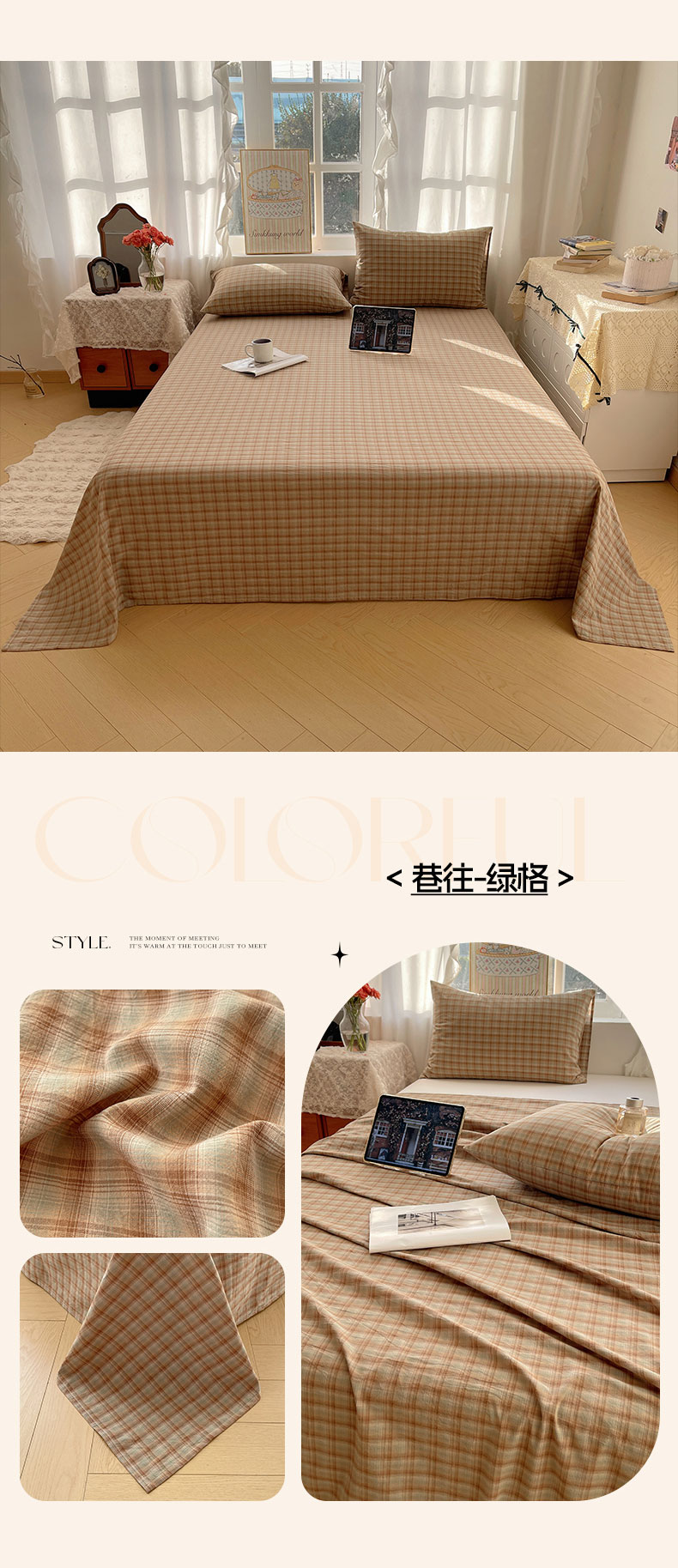 (总)六巷胡同 2026新款A类全棉纯棉水洗棉色织格子单品床单 床单单件,追光-蓝格,川奈-咖格,觅影-粉格,觅影-黑格,觅影-咖格,觅影-棕格,巷往-红格,巷往-灰格,巷往-橘格,巷往-蓝格,巷往-绿格,悦野-白格,悦野-灰格,知序-灰格,知序-橘格,知序-蓝格,知序-绿格,逐风-红格,逐风-灰格,逐风-咖格,追光-红格,追光-米格,组合图仅供展示不可下单