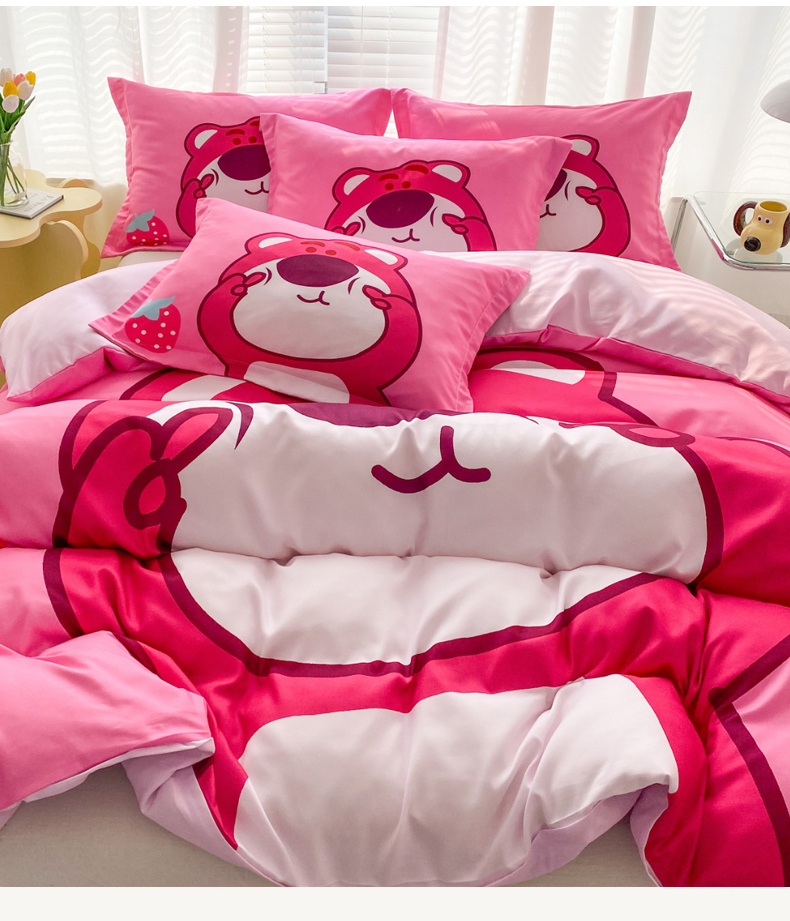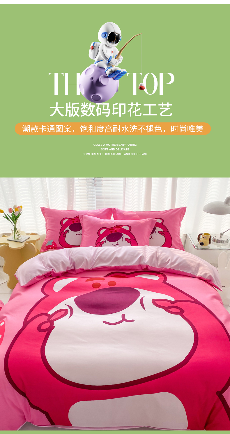 • 91家纺网 家纺一手货源 找家纺 一电 2026新款卡通被套单件被罩男女儿童学生宿舍单人被单男孩卡幼儿园单人被罩-2.磨毛被套 草莓大雄