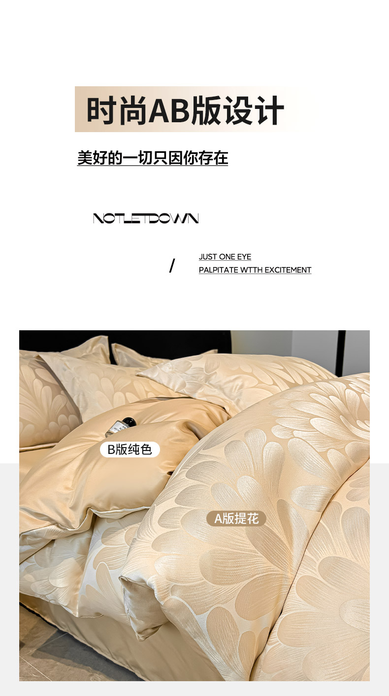 当前位置: 91家纺网 > 商品网购 > 床品套件 > 四件套 > 其它四件套 > 金阳光家纺 2026新款A类简奢款水洗真丝天丝亮丝提花四件套 浮生若梦-香槟