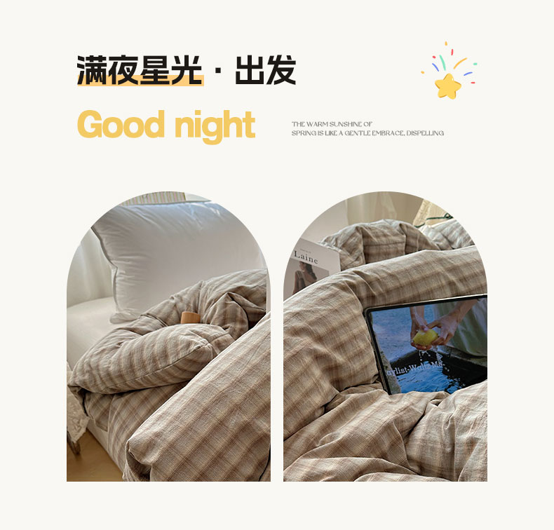 商品名称:六巷胡同 2026新款A类全棉纯棉水洗棉色织格子单品被套 被套单件 巷往-灰格