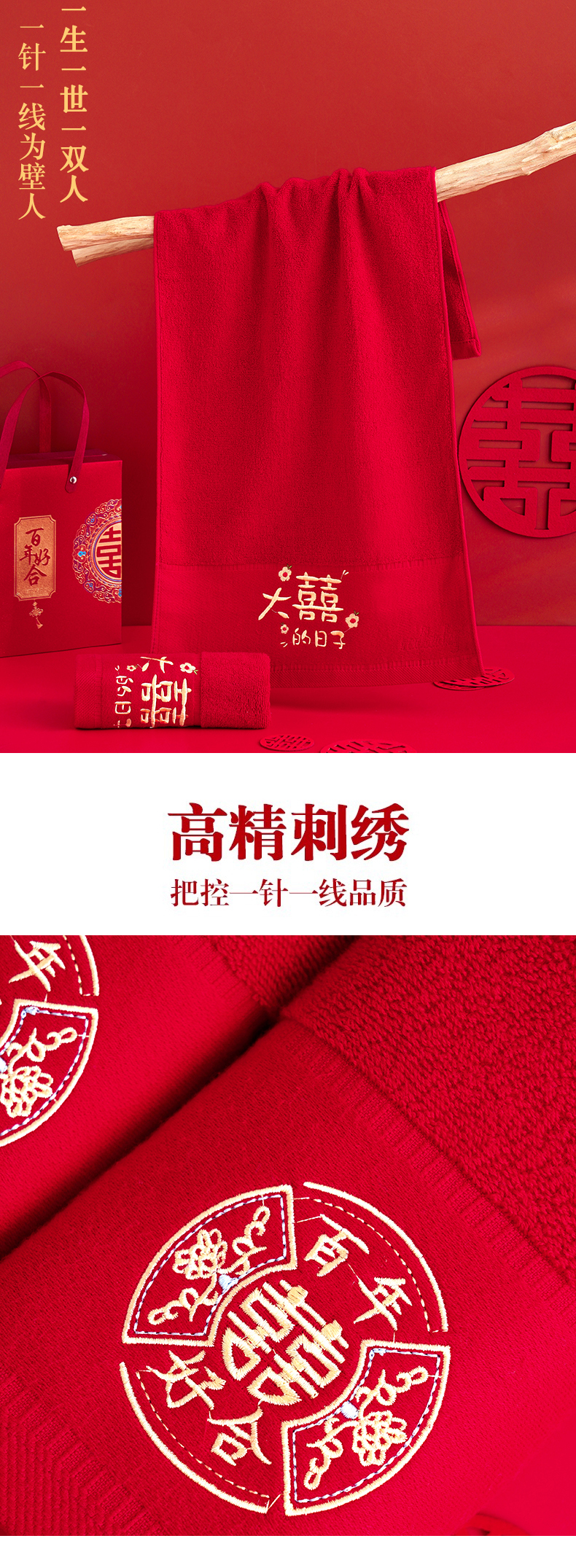 当前位置: 91家纺网 > 商品网购 > 居家日用 > 毛巾/浴巾/浴袍 > 毛巾 > 朴尔家纺-毛巾被 2026新款全棉纯棉红色系喜庆婚庆伴手礼新婚回礼绣花毛巾-场景二 好合百年 礼盒