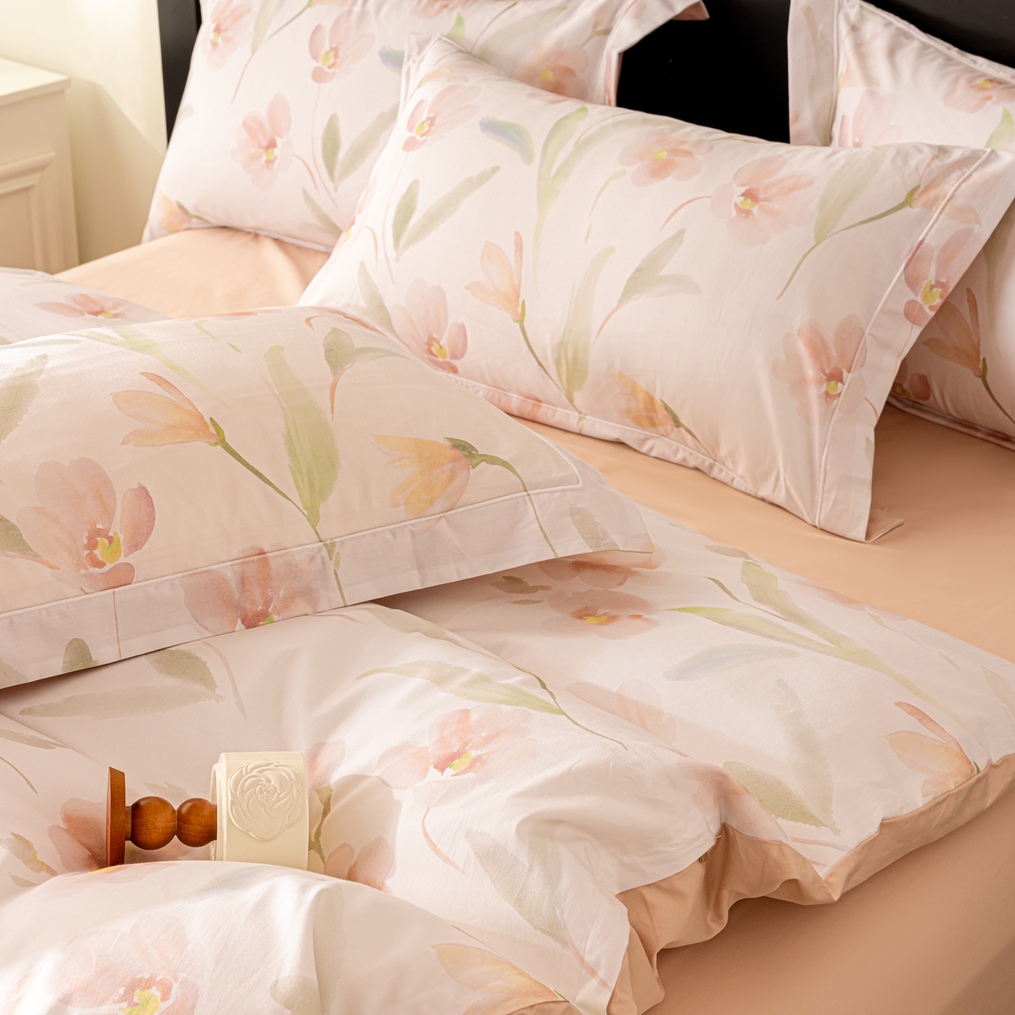 莱豫家纺 2026新款50s阿克苏长绒棉数码印花四件套 安婉