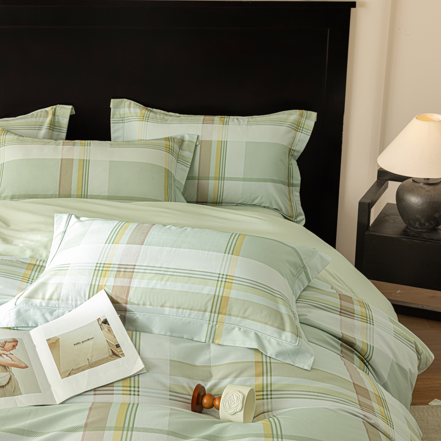 莱豫家纺 2026新款50s阿克苏长绒棉数码印花四件套 卡洛斯绿