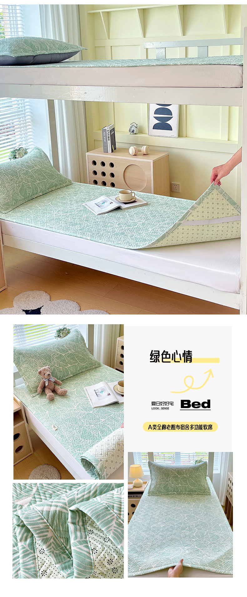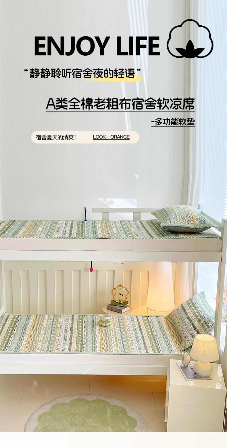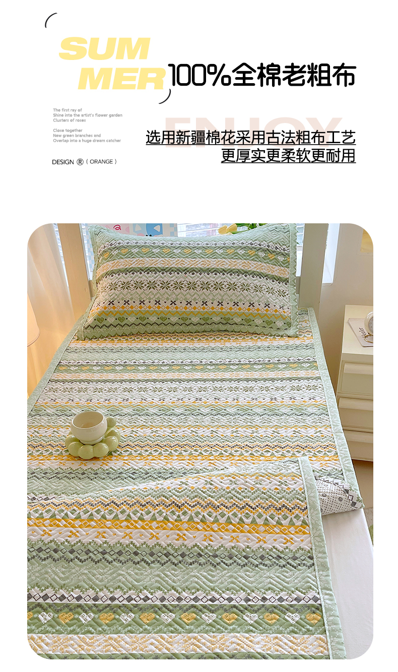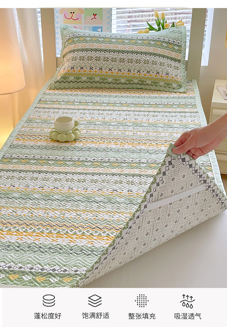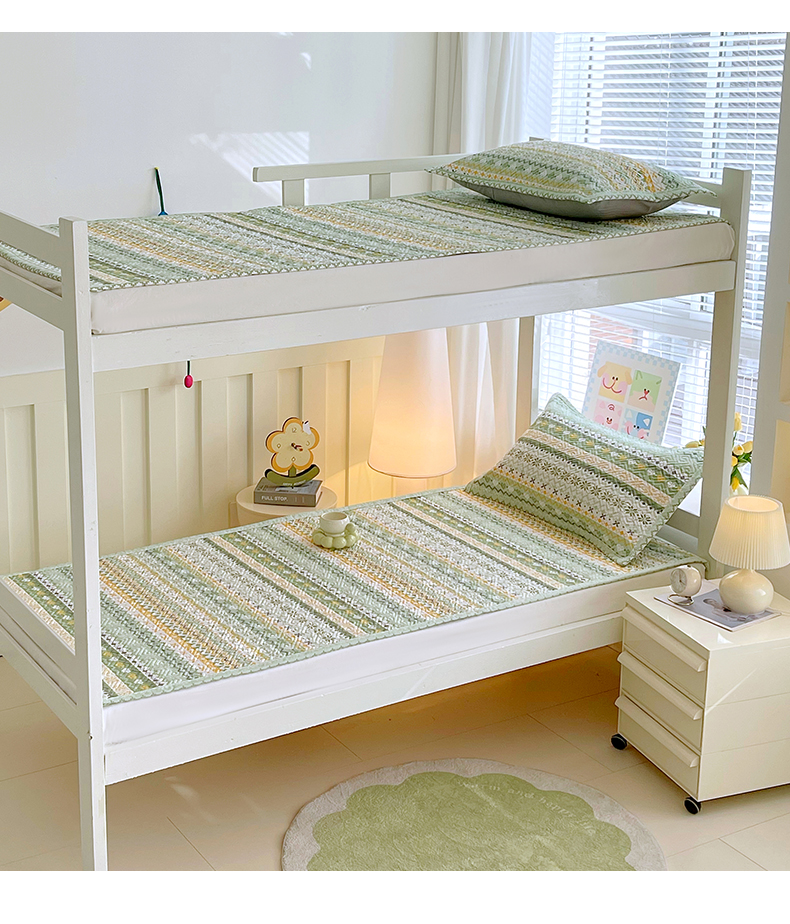当前位置: 91家纺网 > 商品网购 > 床上用品 > 凉席 > 其他凉席 > 金鑫汇家纺 2026春夏新款学生床新花型老粗布床盖夹棉软凉席席子可以机洗 学生床-星辰-绿