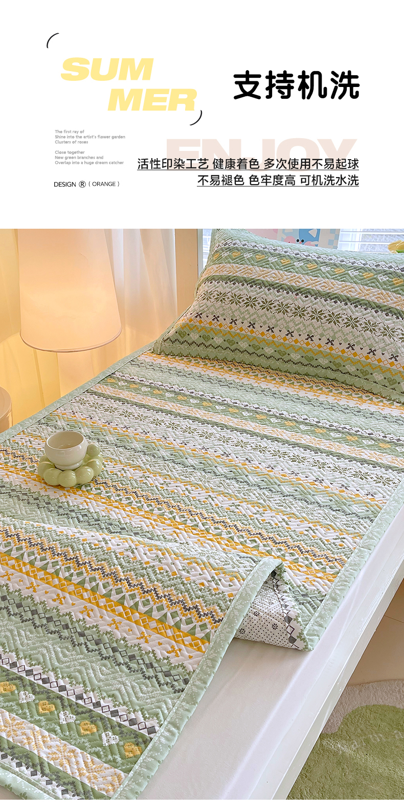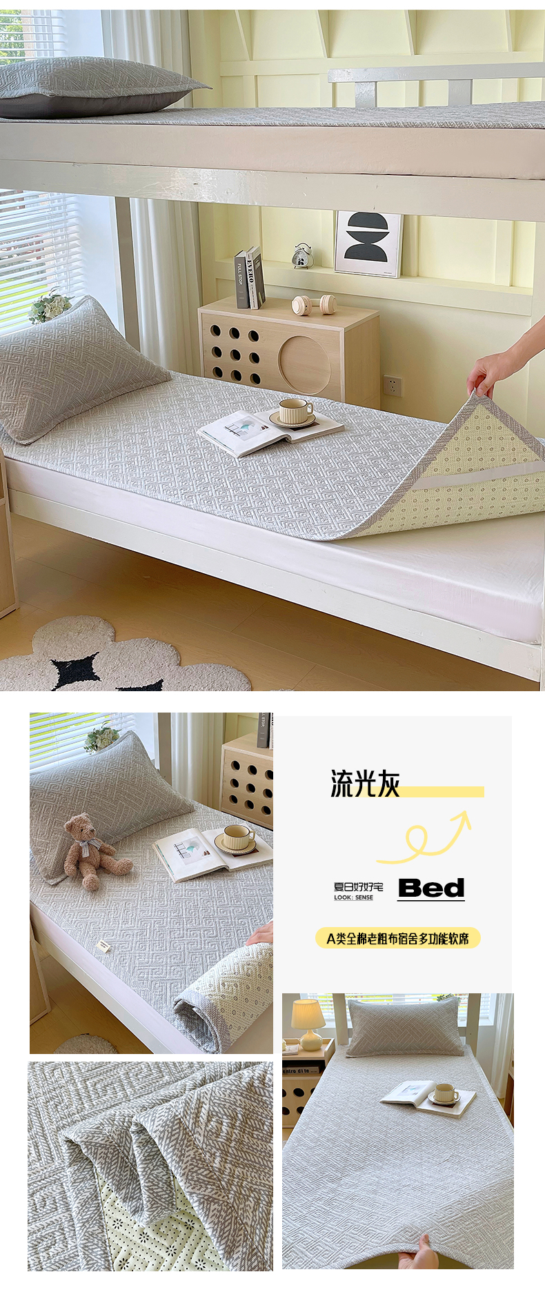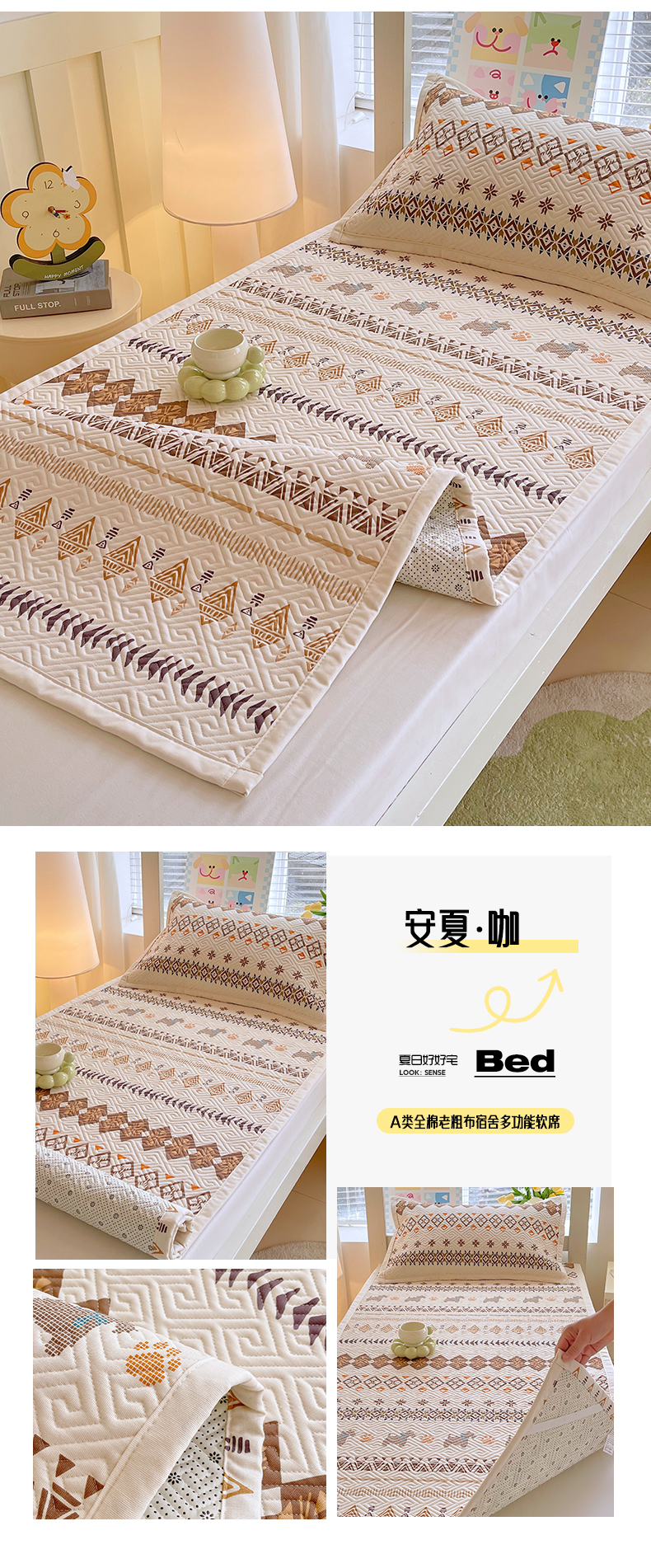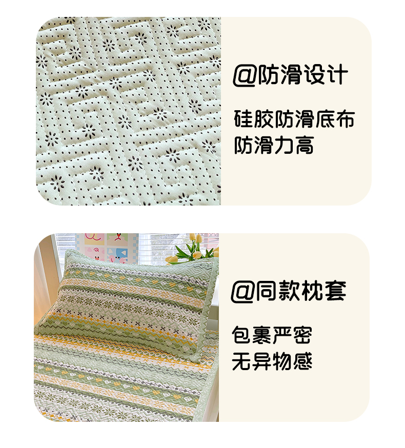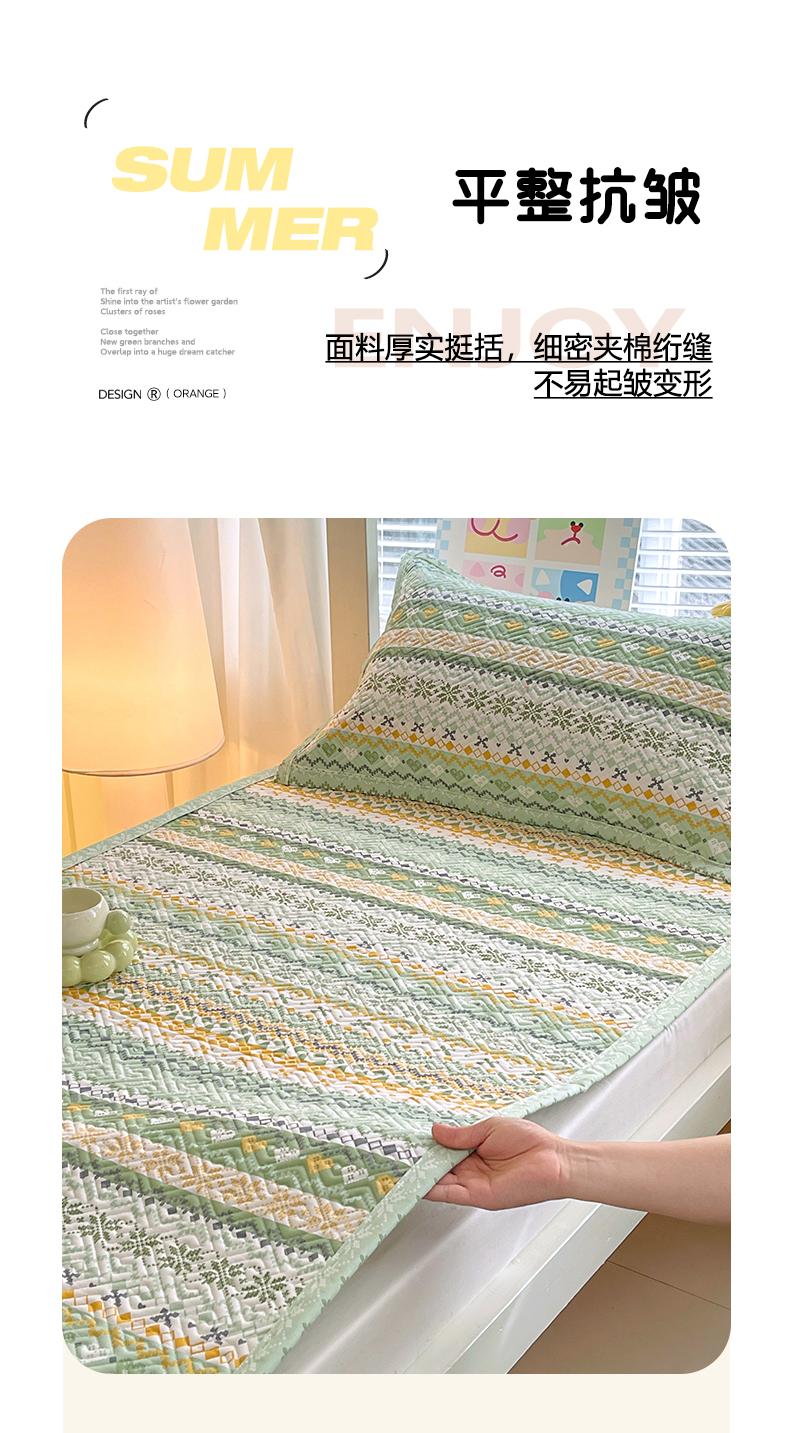 当前位置: 91家纺网 > 商品网购 > 床上用品 > 凉席 > 其他凉席 > 金鑫汇家纺 2026春夏新款学生床新花型老粗布床盖夹棉软凉席席子可以机洗 学生床-星辰-绿
