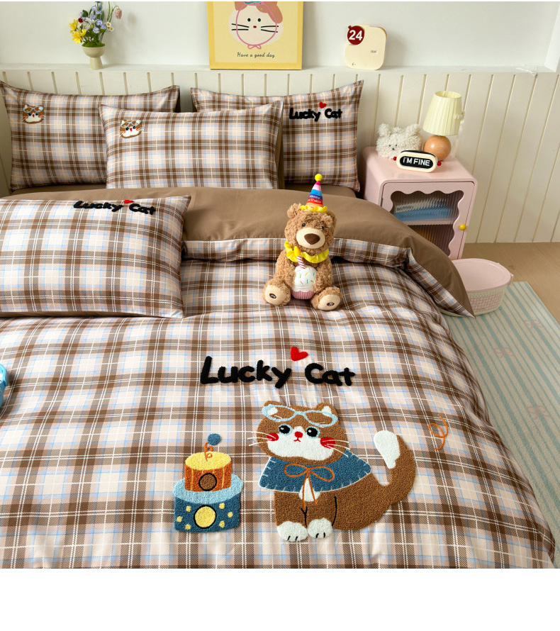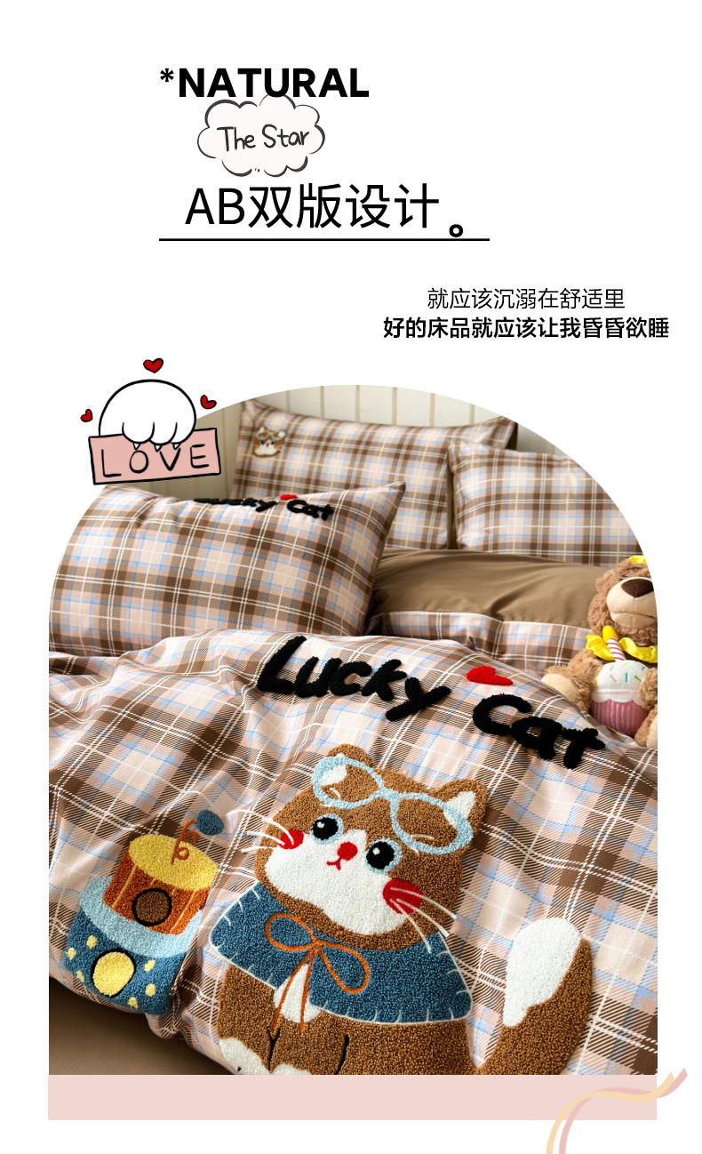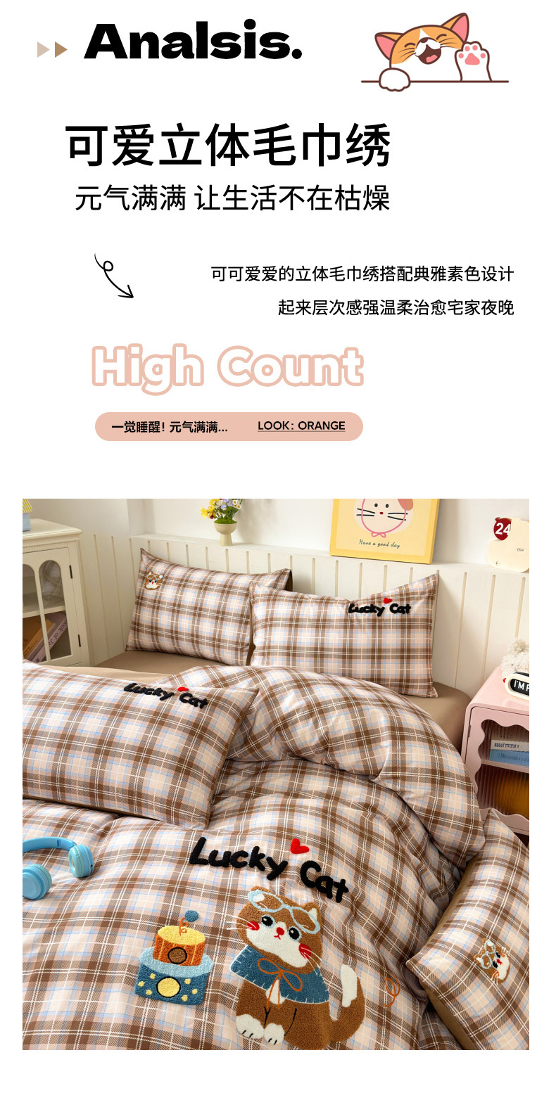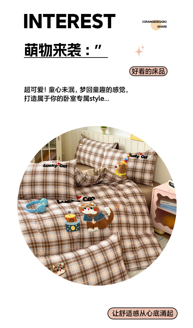 当前位置: 91家纺网 > 商品网购 > 床品套件 > 四件套 > 全棉普通四件套 > 如意朵 2026新款超柔高密全棉小清新绣花四件套(专版花型) 摩卡萌喵