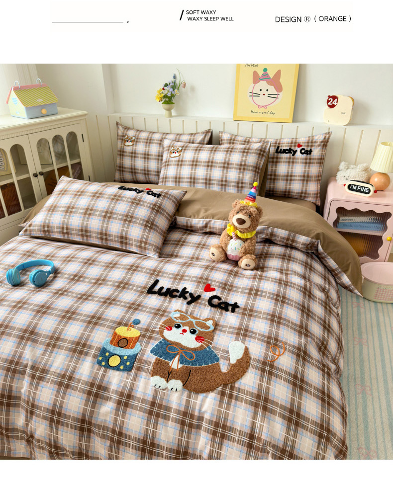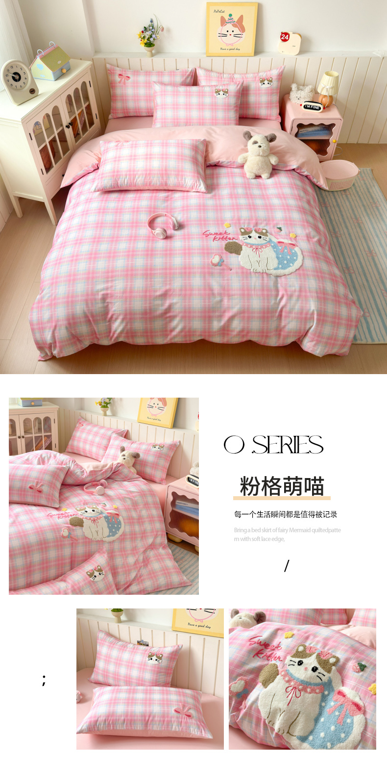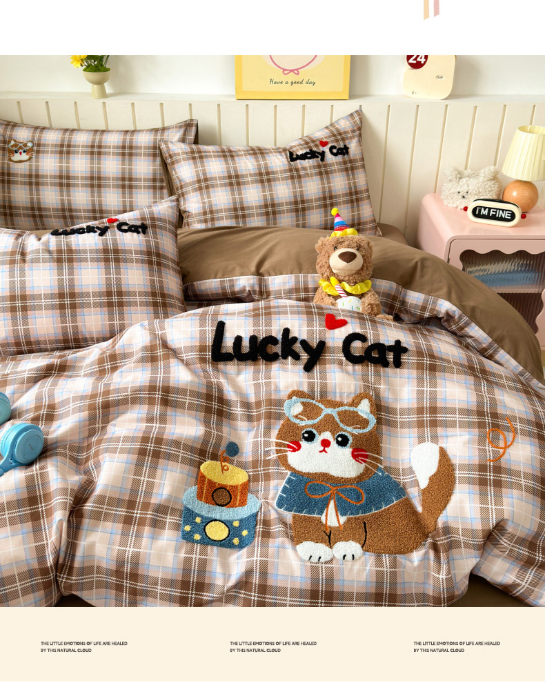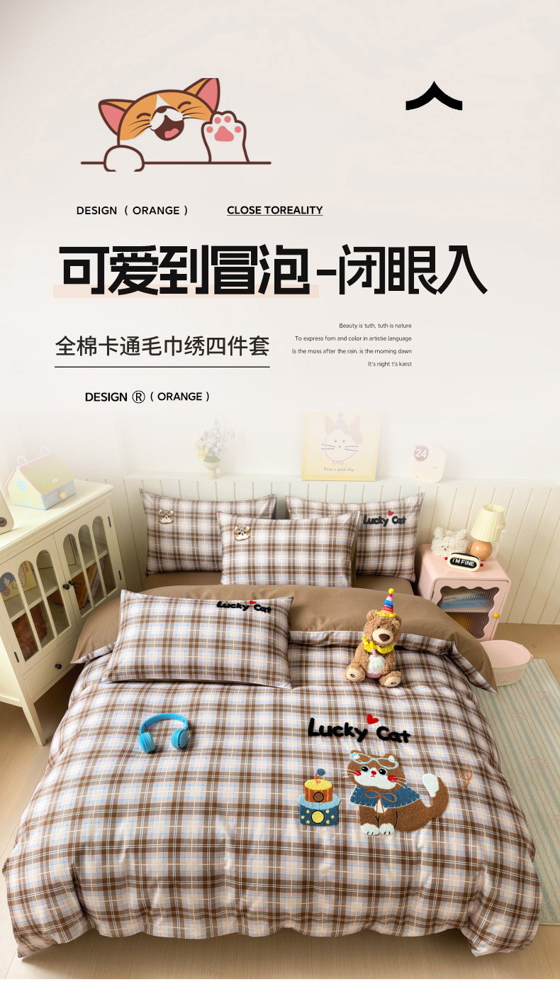 当前位置: 91家纺网 > 商品网购 > 床品套件 > 四件套 > 全棉普通四件套 > 如意朵 2026新款超柔高密全棉小清新绣花四件套(专版花型) 摩卡萌喵
