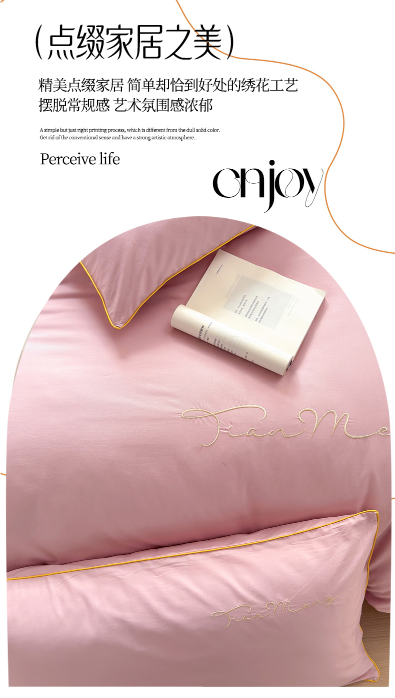 商品名称:Sweet dreams甜梦 2026新款全棉纯棉刺绣嵌绳床盖四件套 水蜜粉