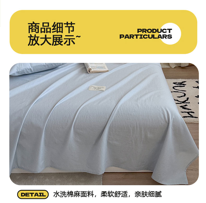 当前位置: 91家纺网 > 商品网购 > 床上用品 > 床单 > 桃子家居 2026新款A类纯棉水洗原生态棉麻纯色织标简约无印单品床单床笠系列 棉麻单品-水色兰