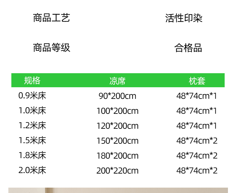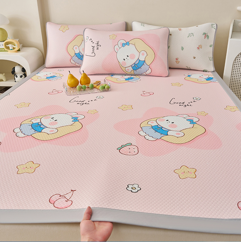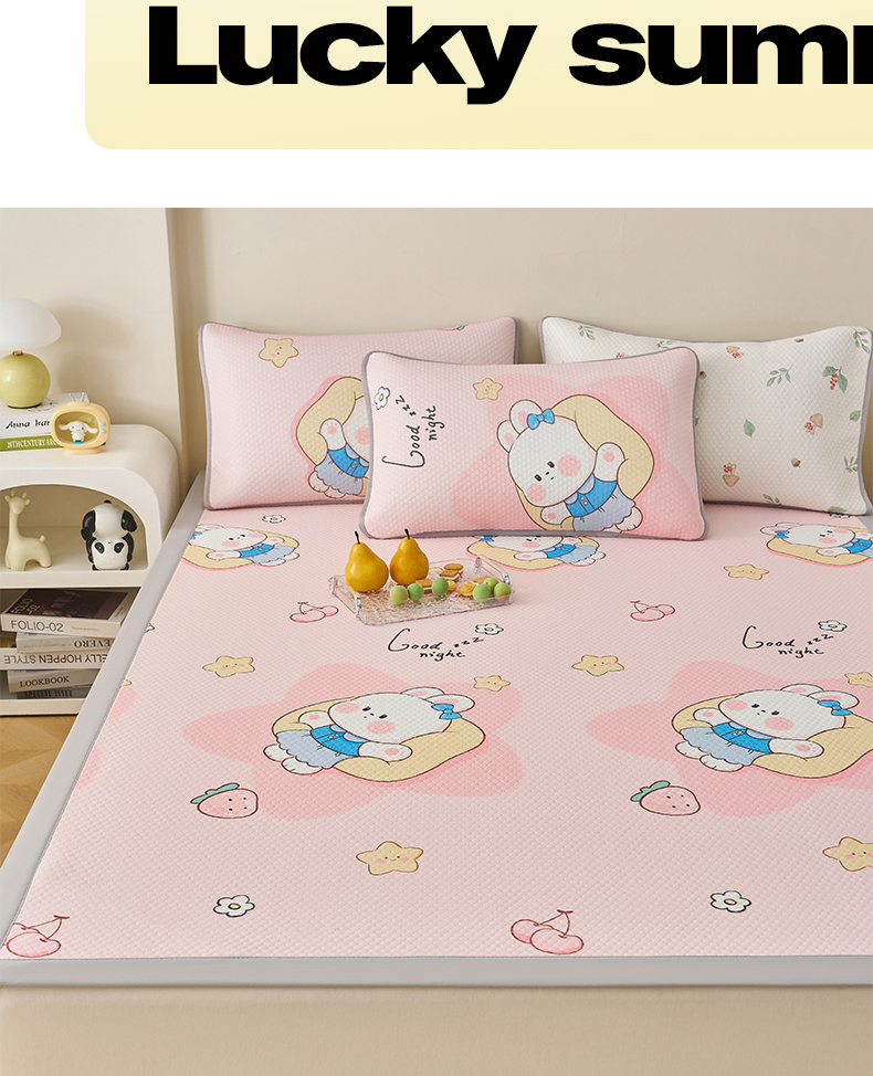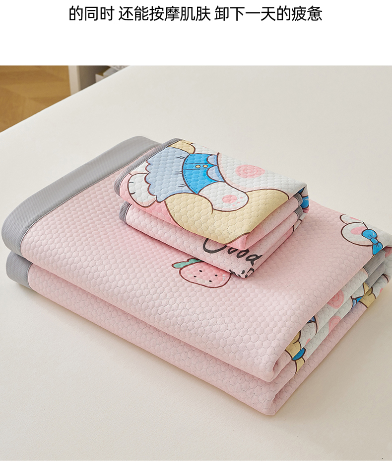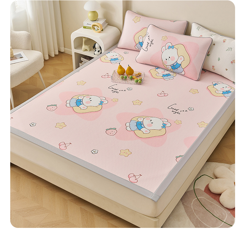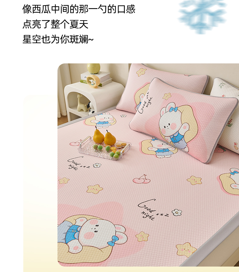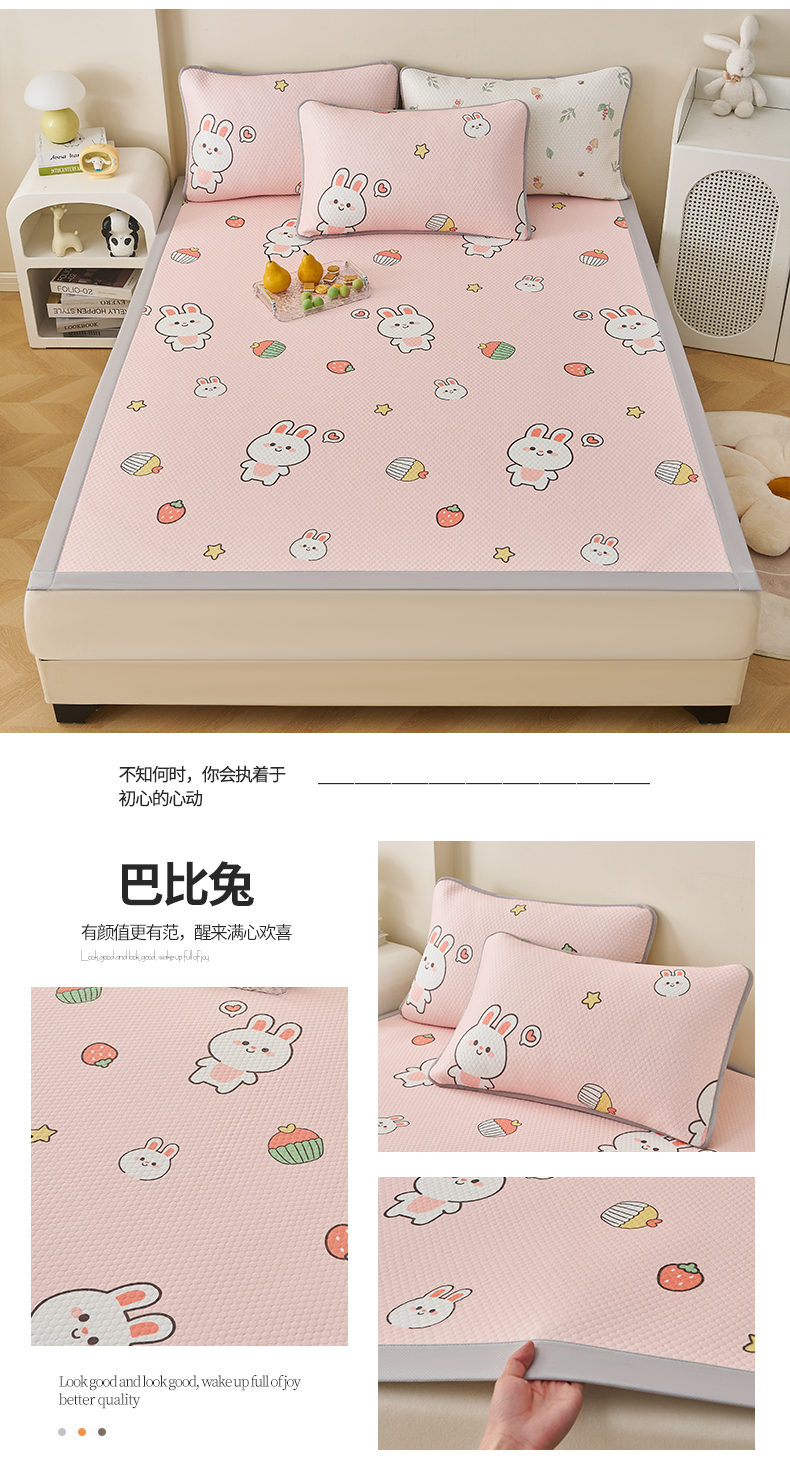商品名称:奇丝雅 2026新款A类印花冰豆豆凉席三明治透气网冰丝凉席家用双人冰丝席床单可机洗大床图 大床款-兔宝贝