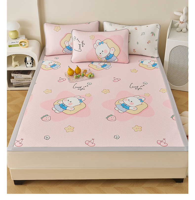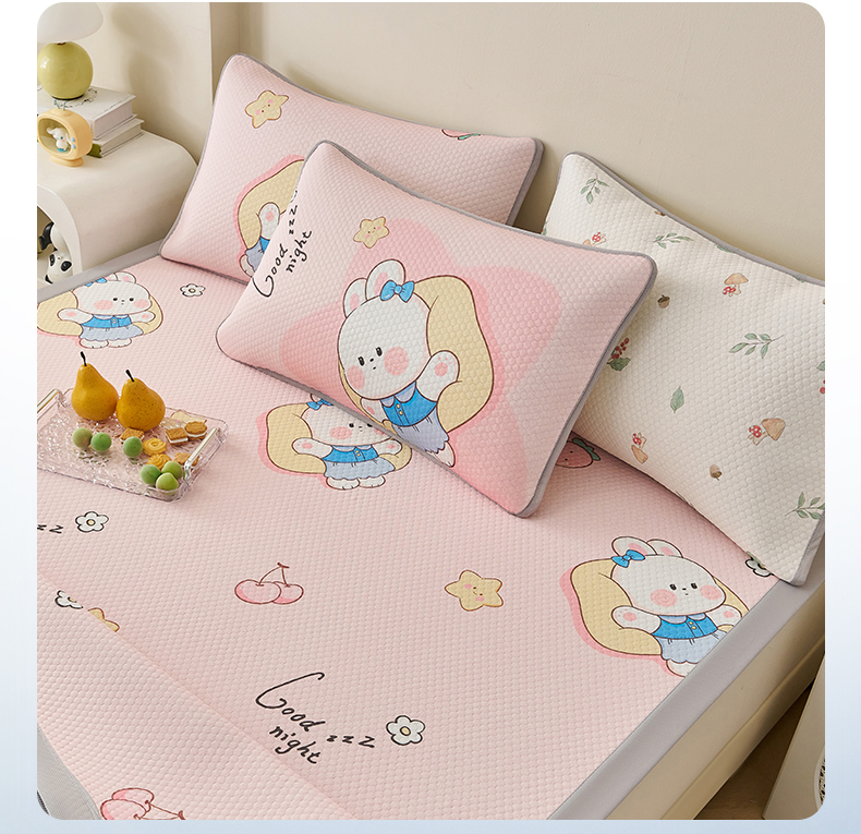 奇丝雅 2026新款A类印花冰豆豆凉席三明治透气网冰丝凉席家用双人冰丝席床单可机洗大床图 大床款-兔宝贝