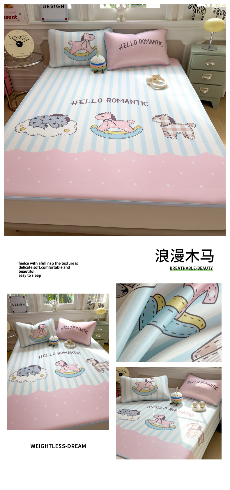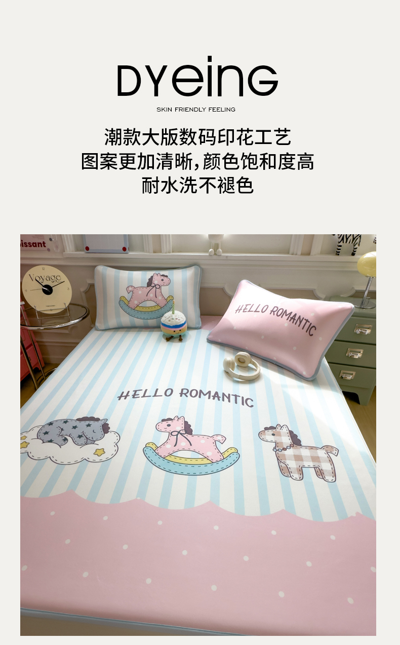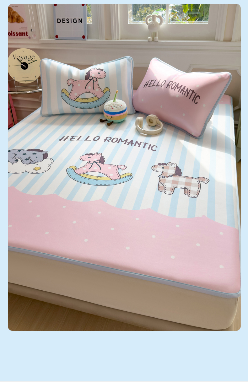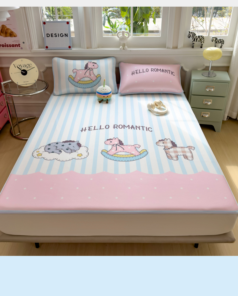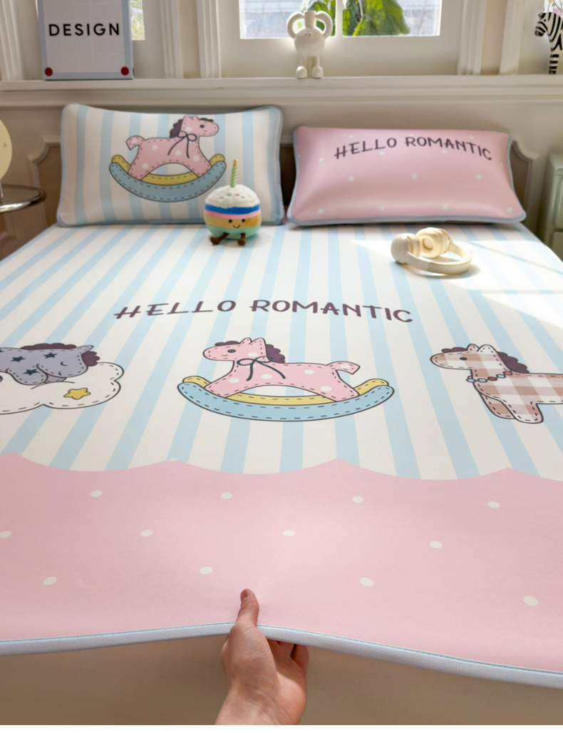 商品名称:丝羽坊 2026新款ins设计师原创大版小清新卡通冰皮复合软凉席 浪漫木马-平铺款