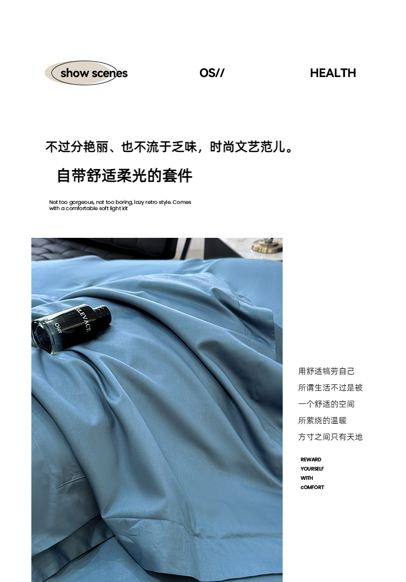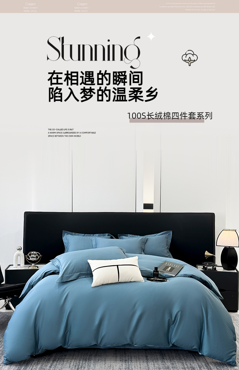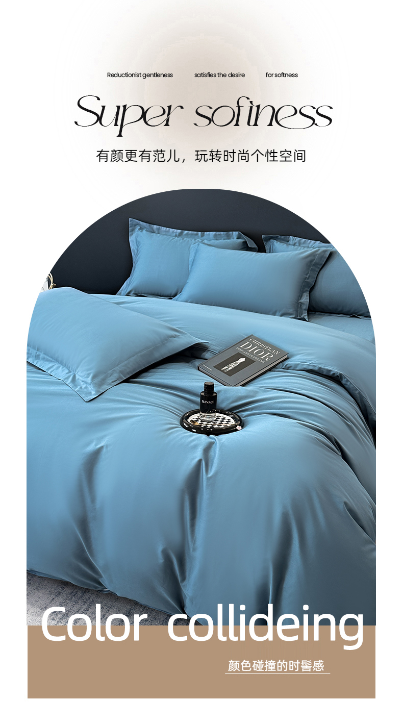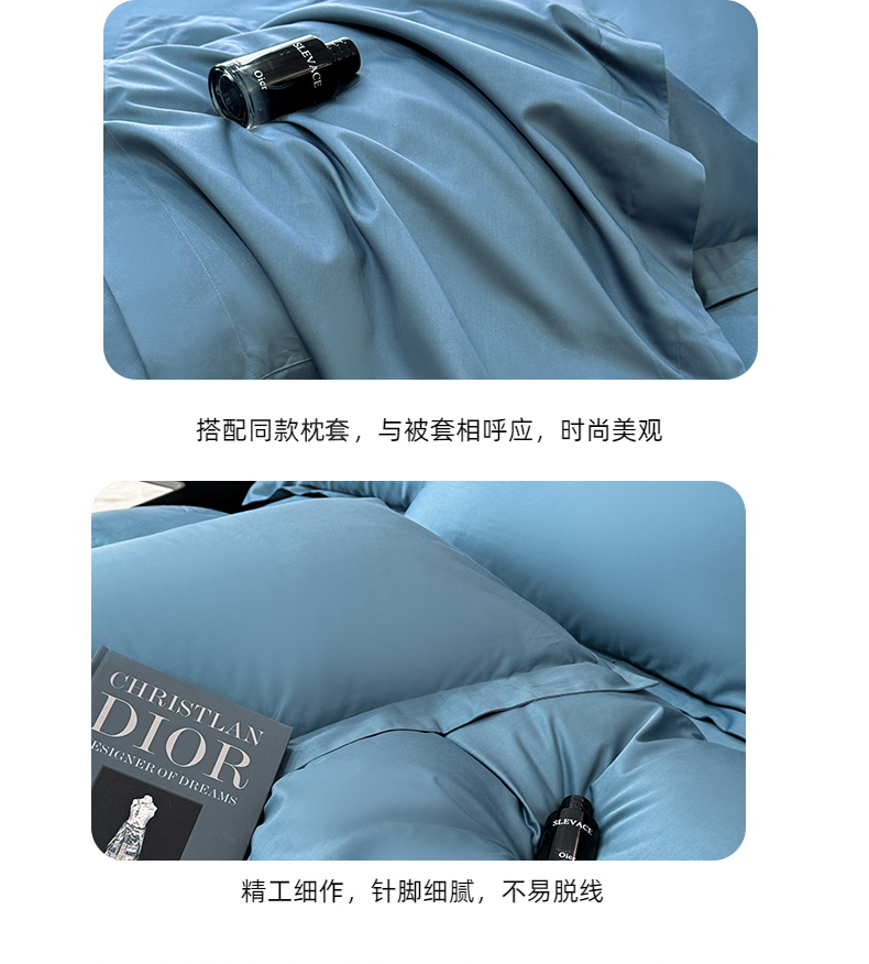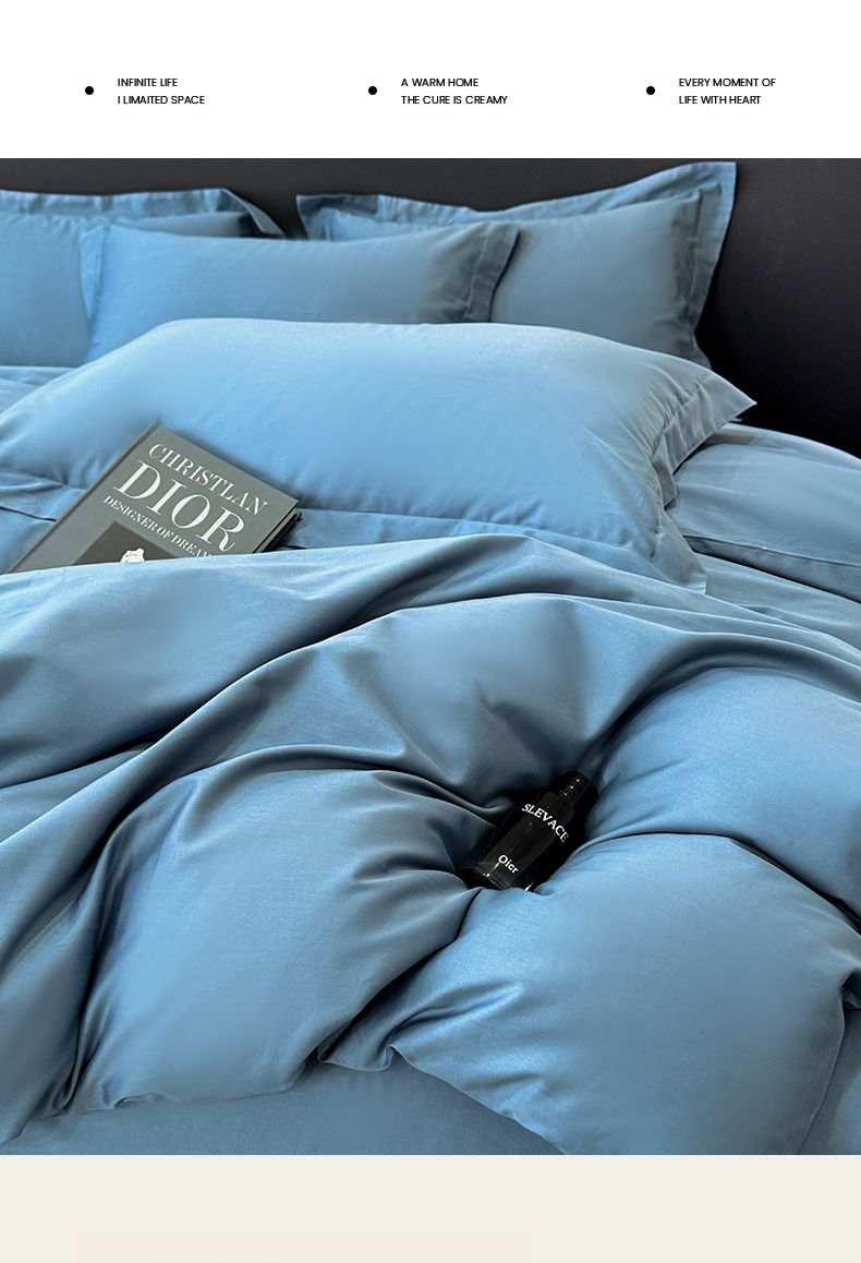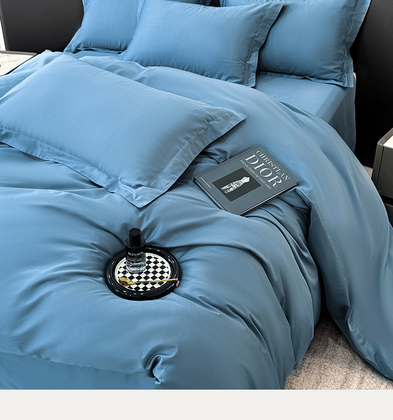 乐蔻家纺 2026新款100S长绒棉纯棉素色款四件套 天空蓝