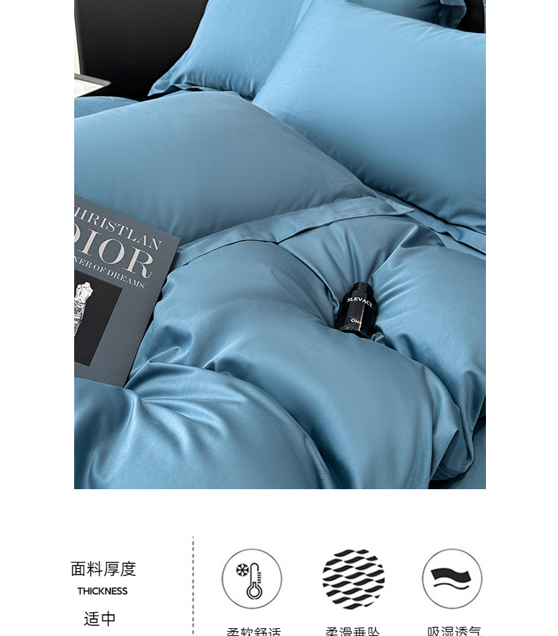 商品名称:乐蔻家纺 2026新款100S长绒棉纯棉素色款四件套 天空蓝