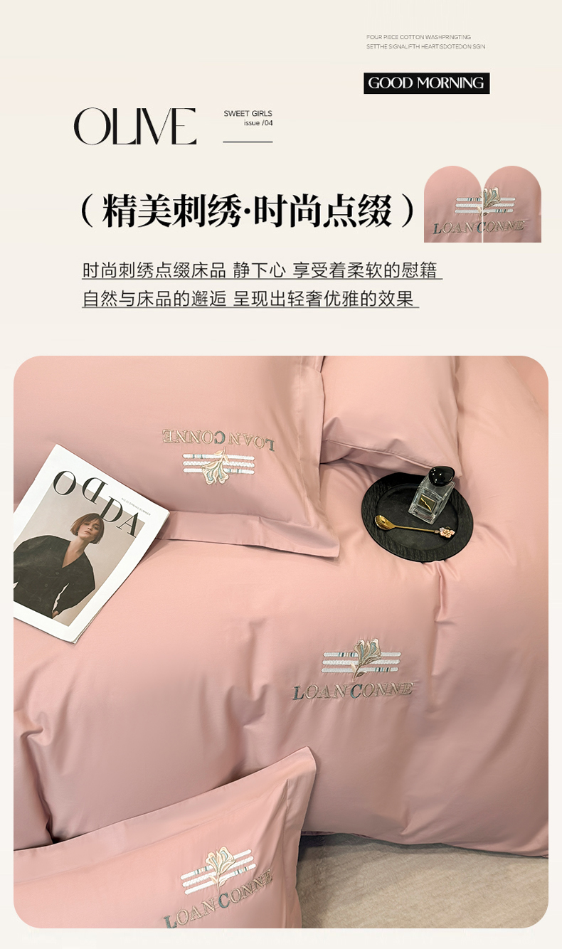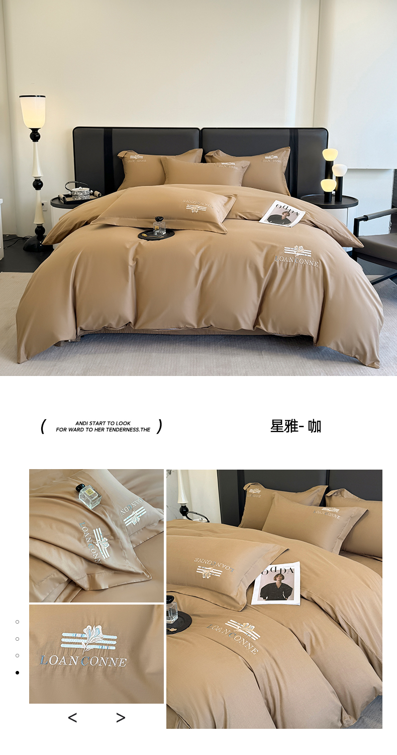 (总)乐蔻家纺 2026新款四季款全棉纯棉绣花四件套,星雅 豆沙,星雅 灰,星雅 金,星雅 咖,星雅 蓝,星雅 绿